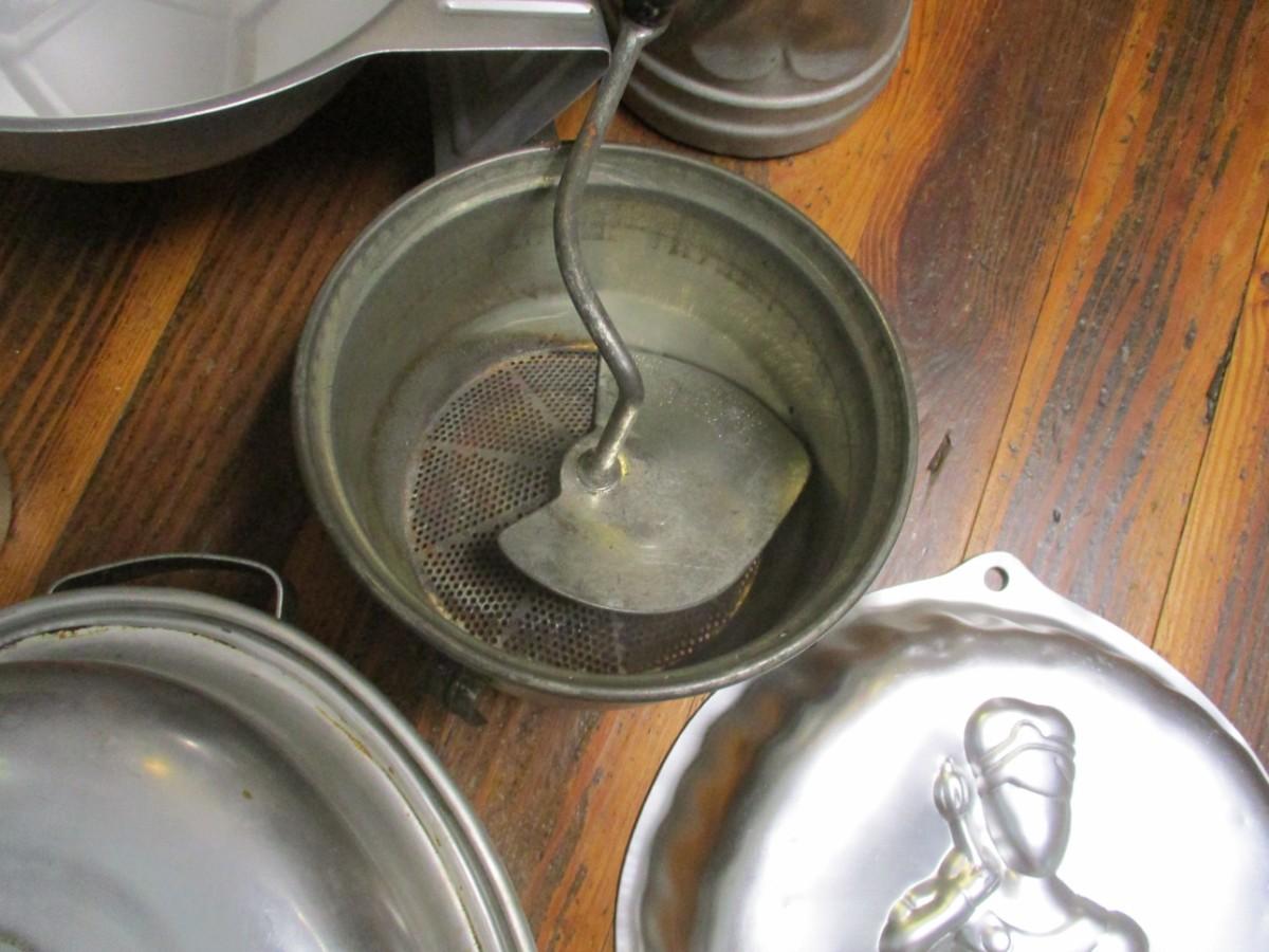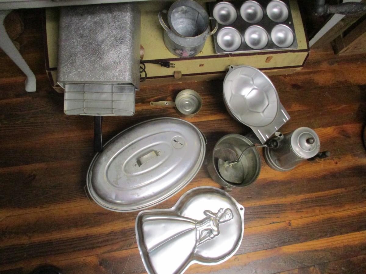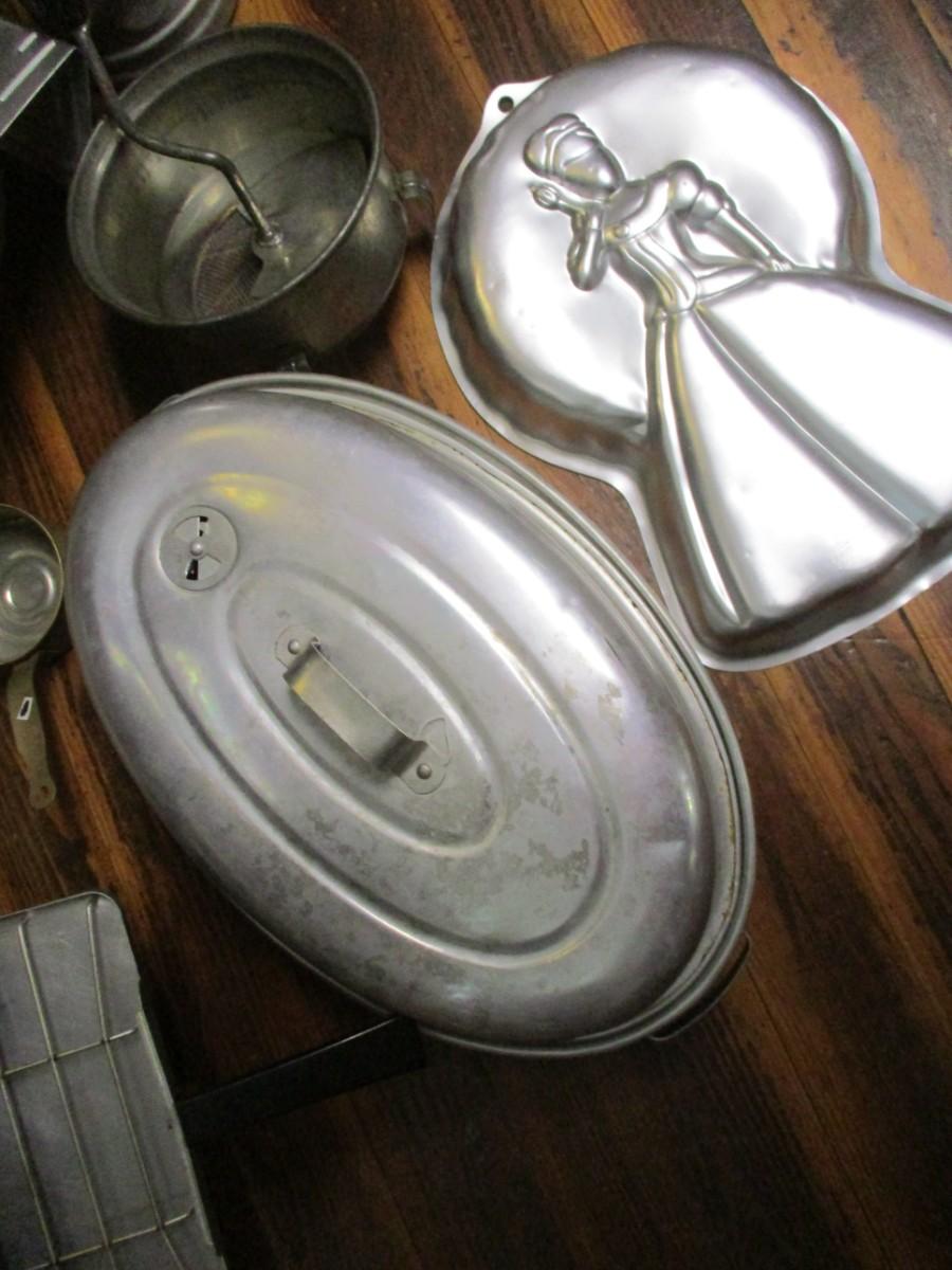 Vintage Pressed Aluminum Kitchen Cookware and Baking Accessories - D
