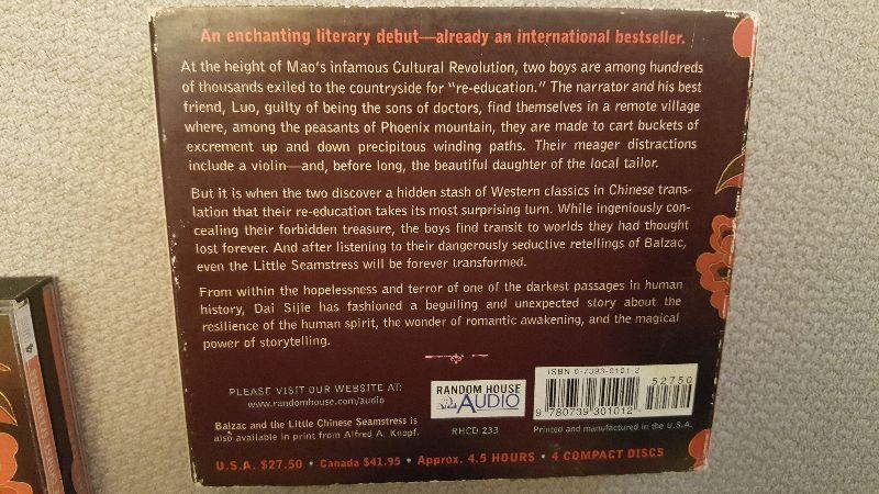 This lot is for a previously enjoyed copy of Balzac and the Little Chinese Seamstress Audio Book. The CDs appear to be in good shape but have not been tested by us. This audio book is out-of-print and somewhat difficult to find at a good price. If you have been wanting to ready this book bid higher that anyone else and it will be yours to enjoy. Donated by Diann Nance
