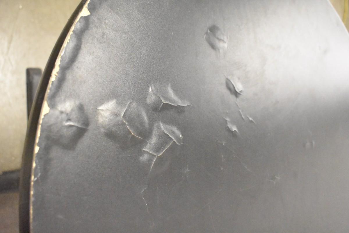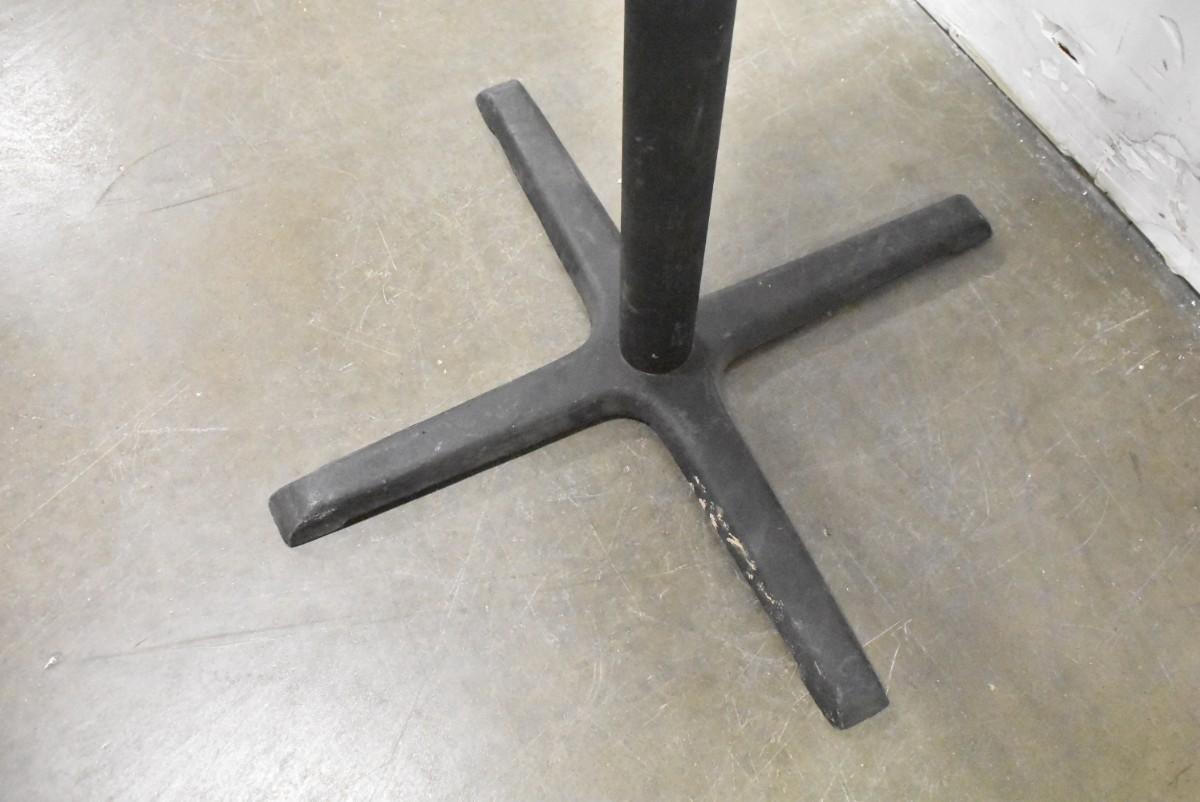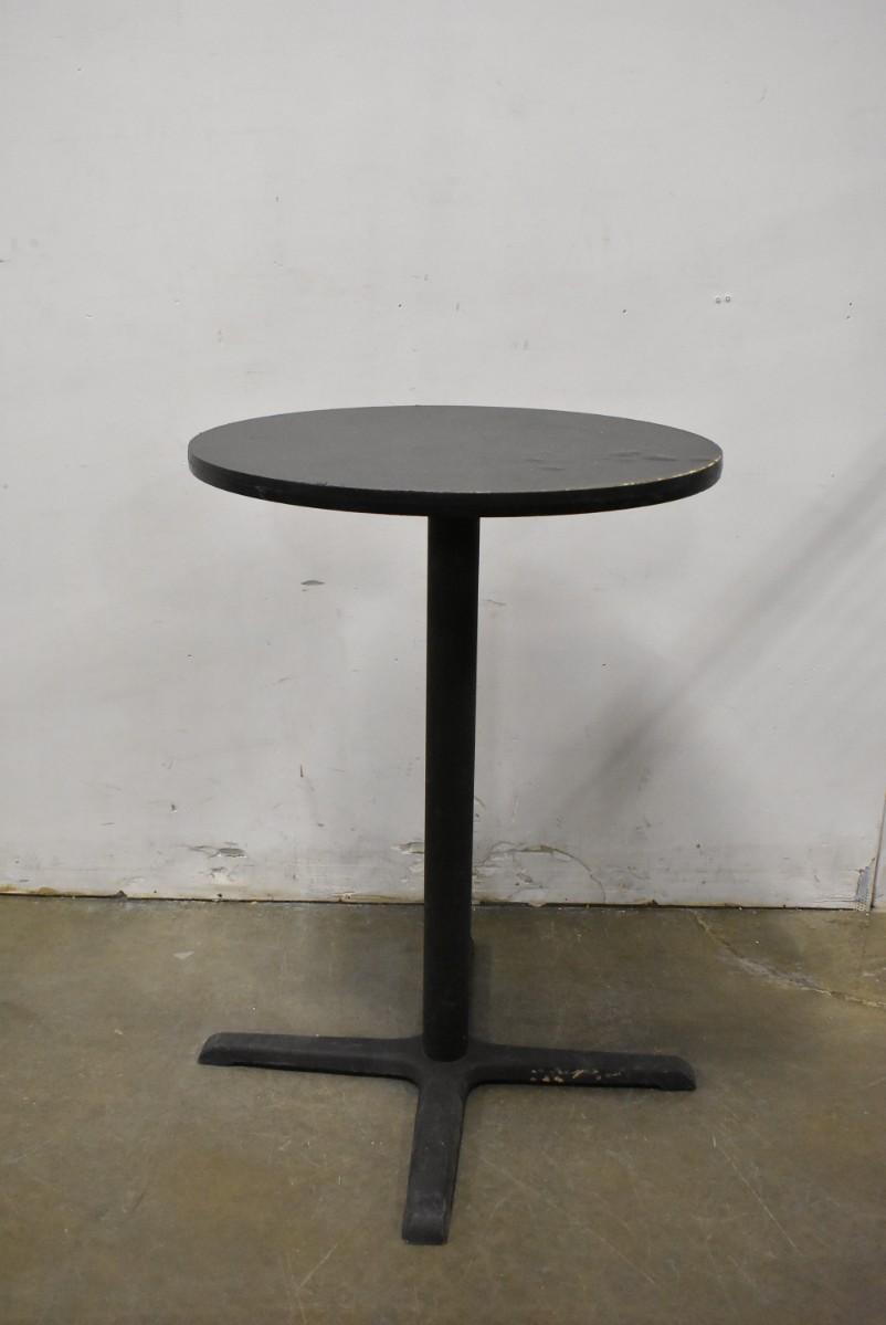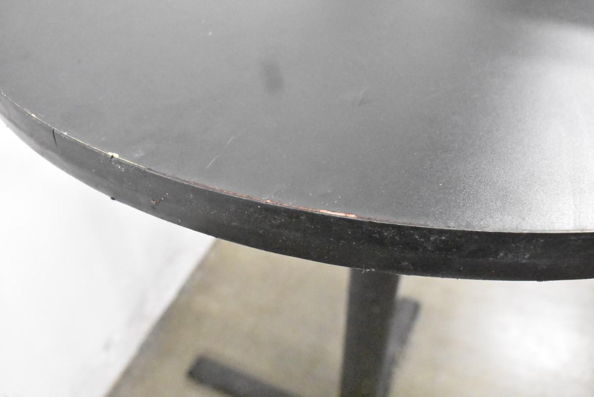 Bar Height Black Table, 42" Tall, Metal Base Wood Tabletop, Some damage