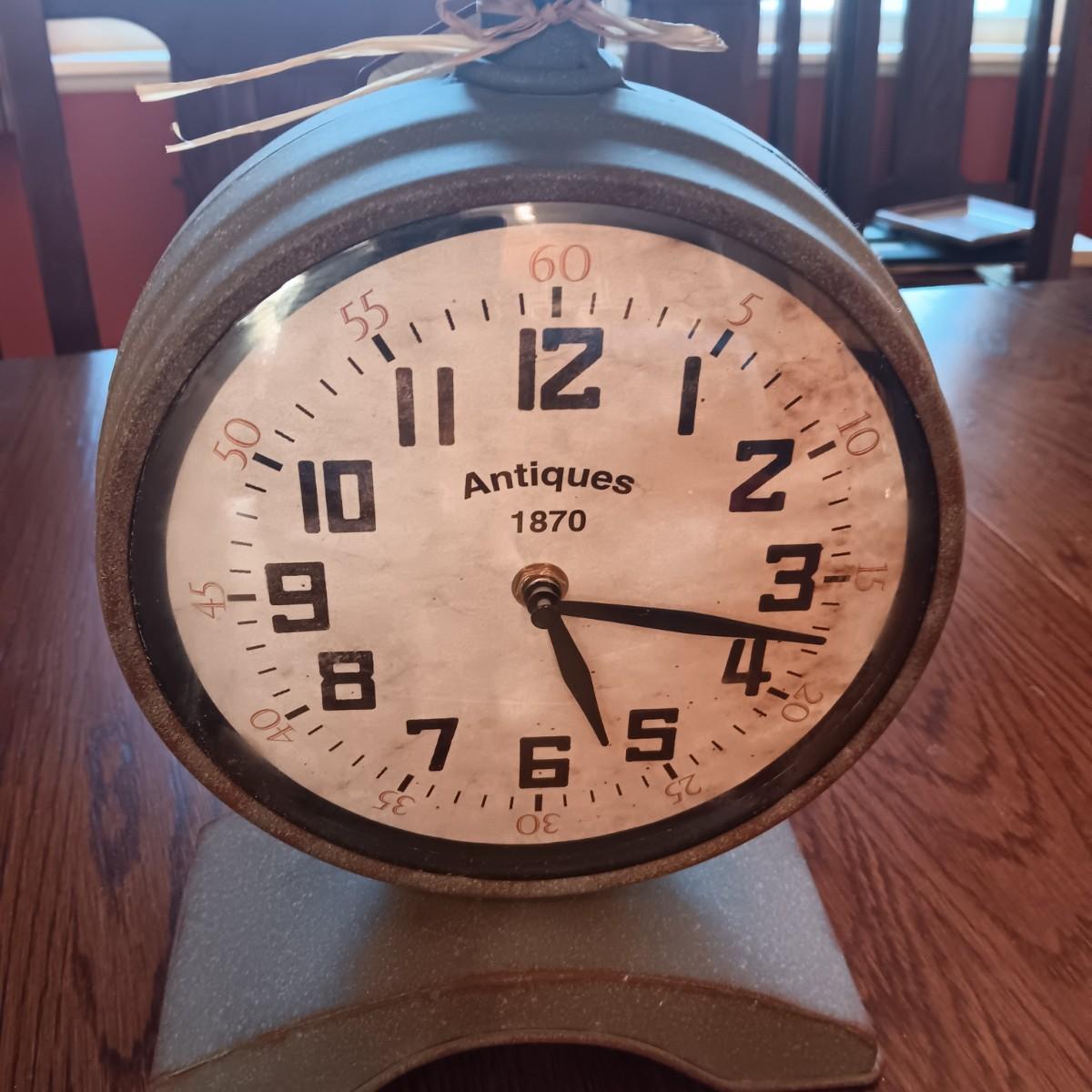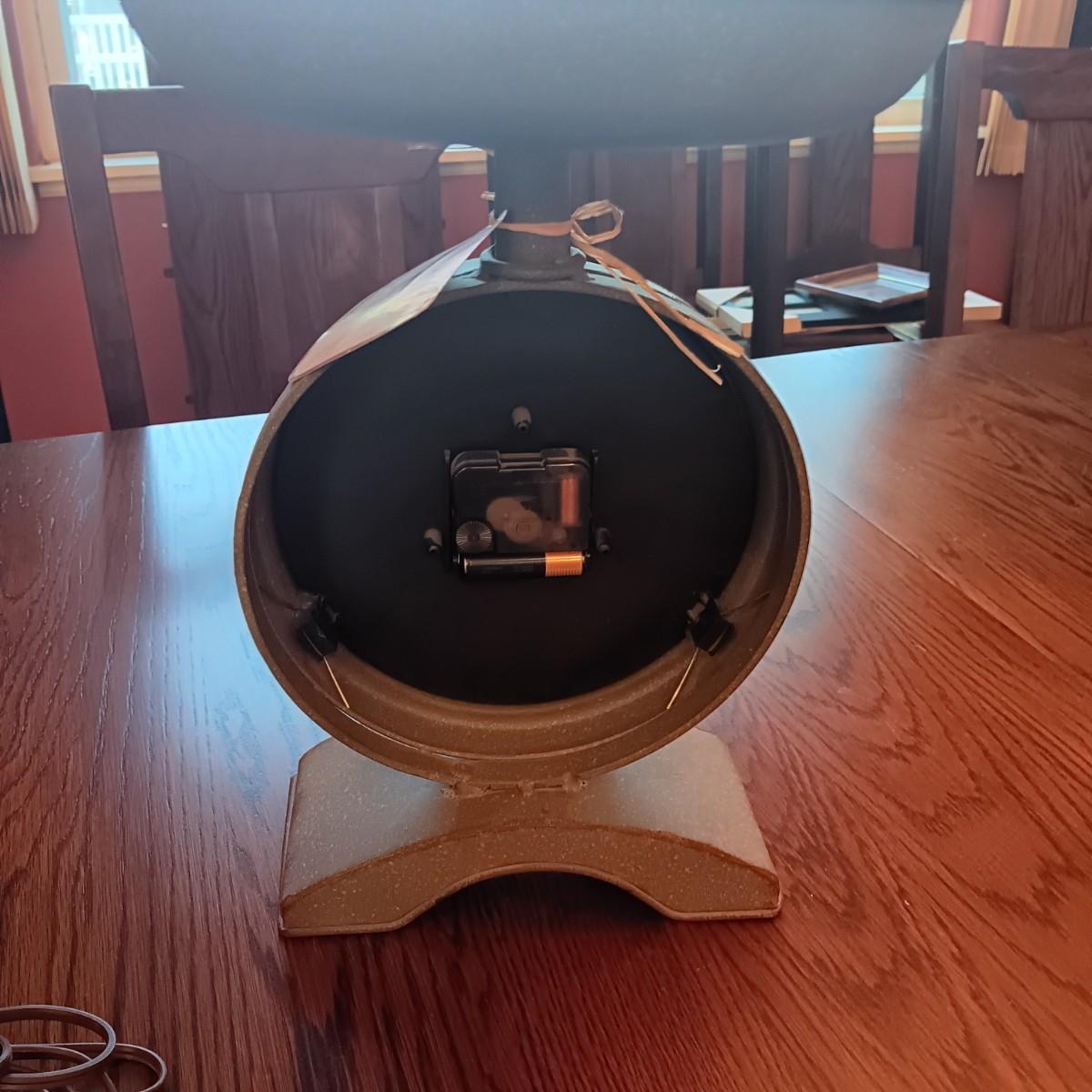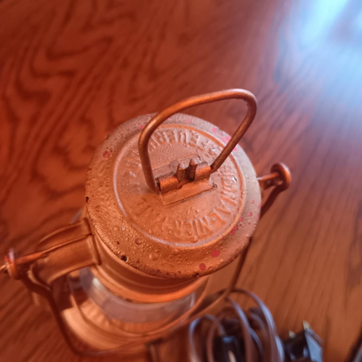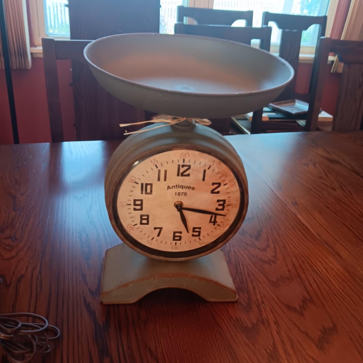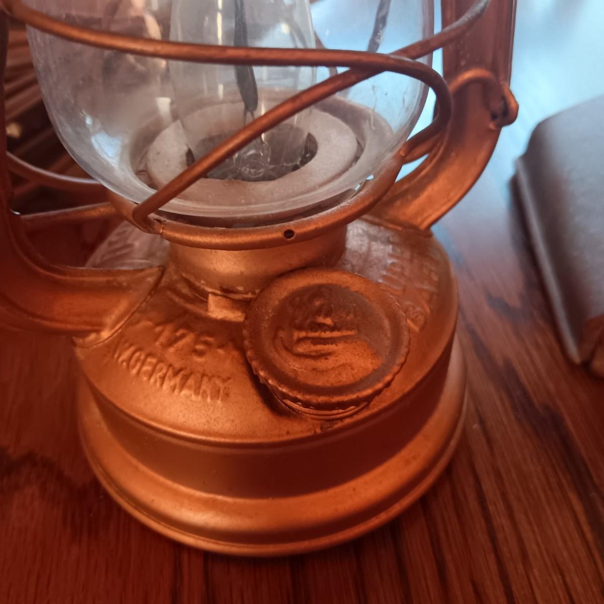 BATTERY OPERATED CLOCK THAT LOOKS LIKE OLD SCALE & A SUPER BABY FEUERHAND LANTERN MADE INTO A LAMP