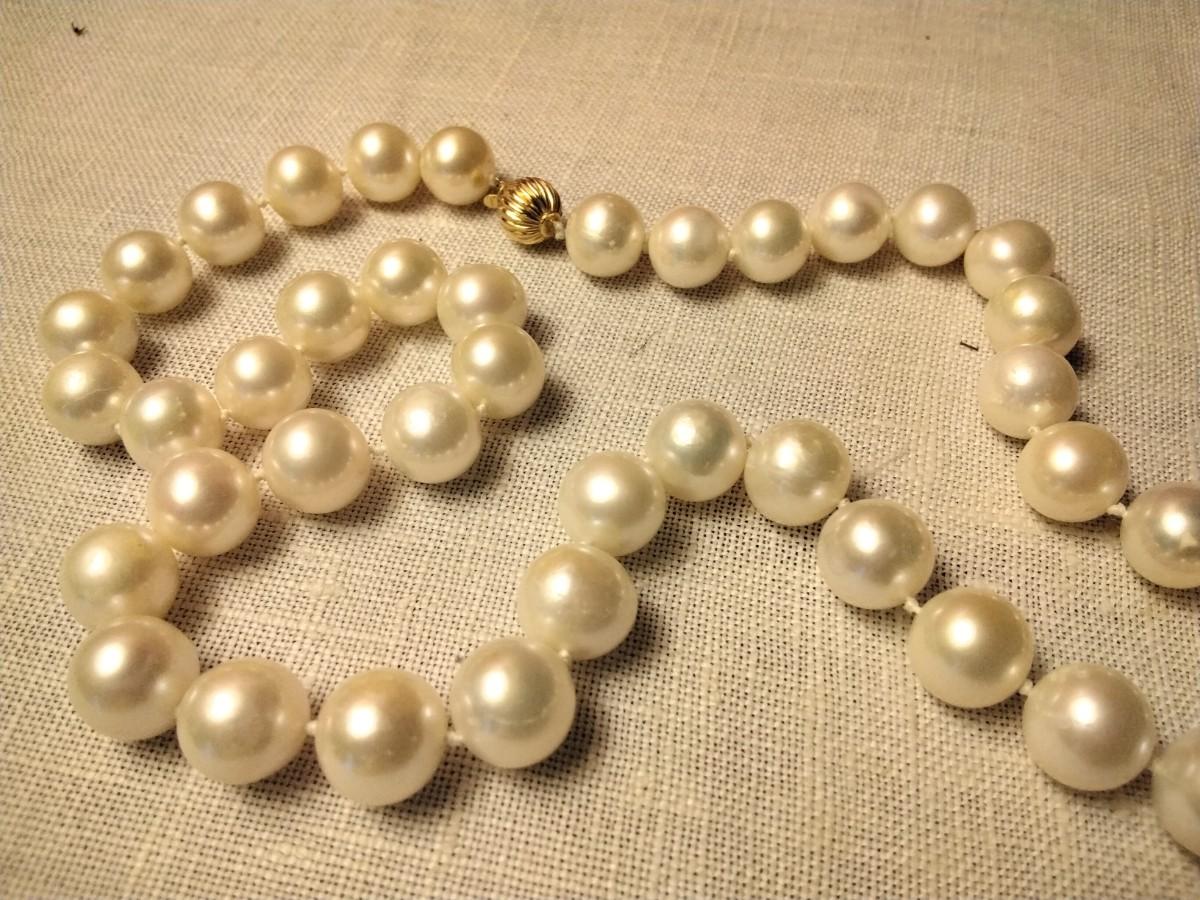Beautiful 18" White Pearls With 14K Gold Clasp