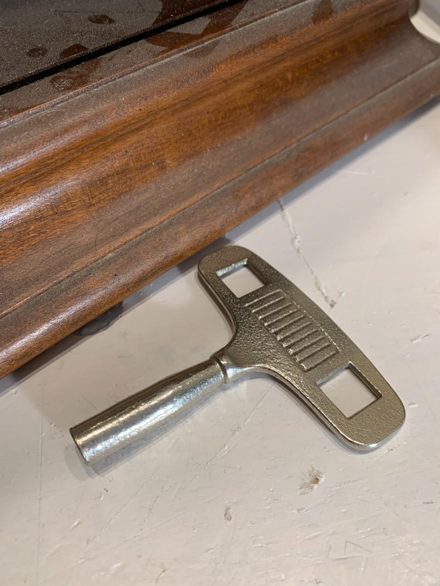 There are three places on the face to wind the clock. The spot closest to the 8 seems stuck. The other two seem to work.