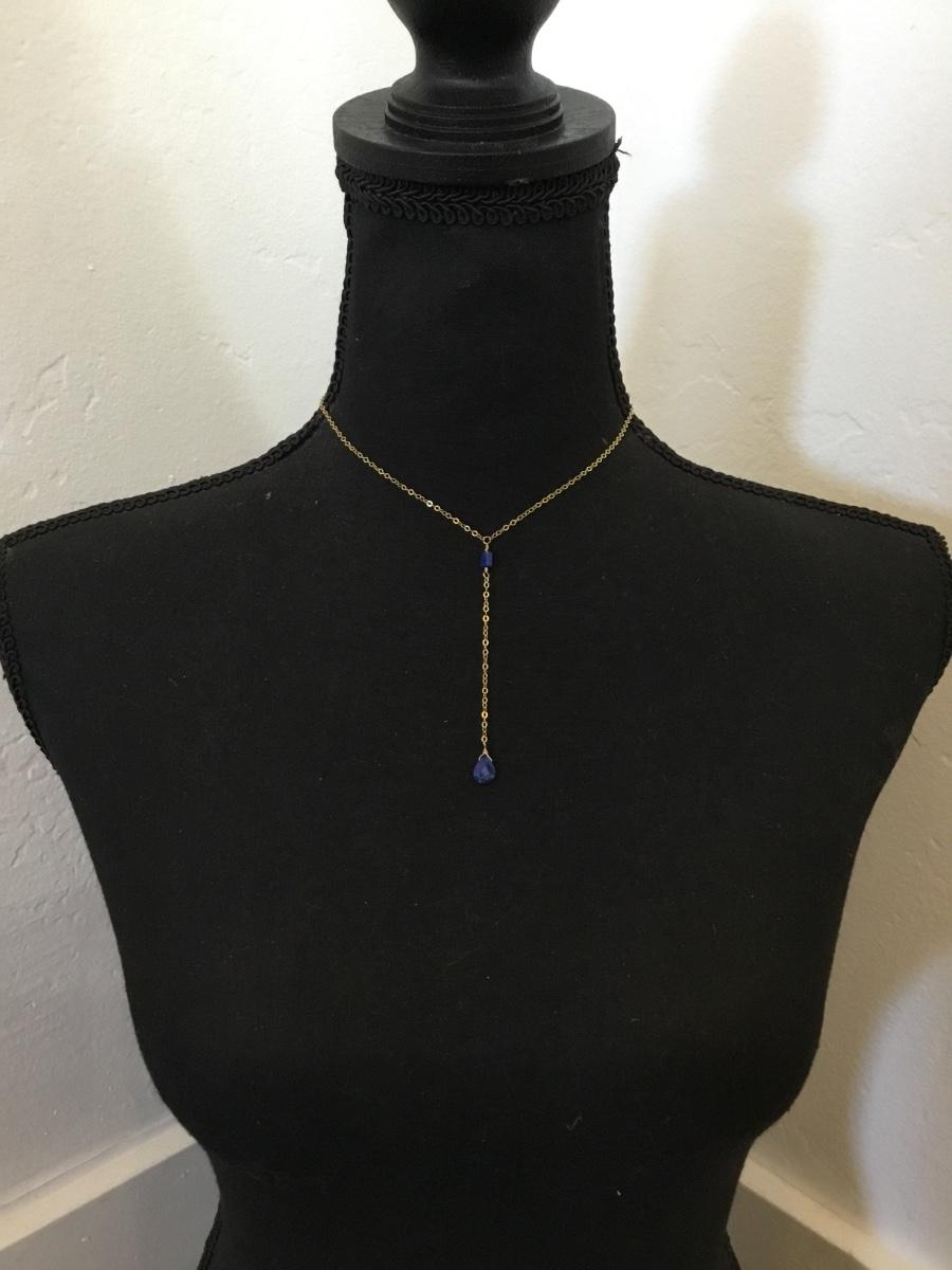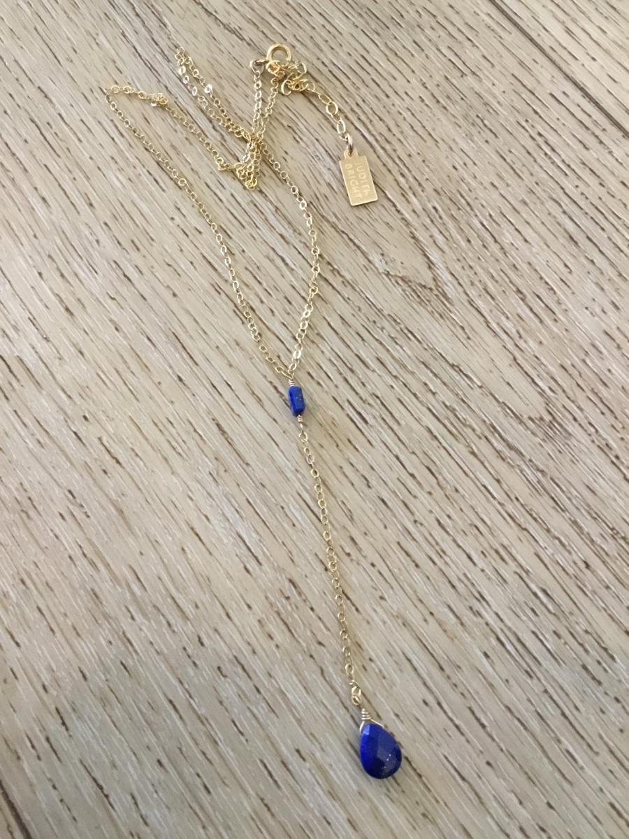 Beautiful designer Judith, bright 14 karat gold filled and lapis stone dainty necklace