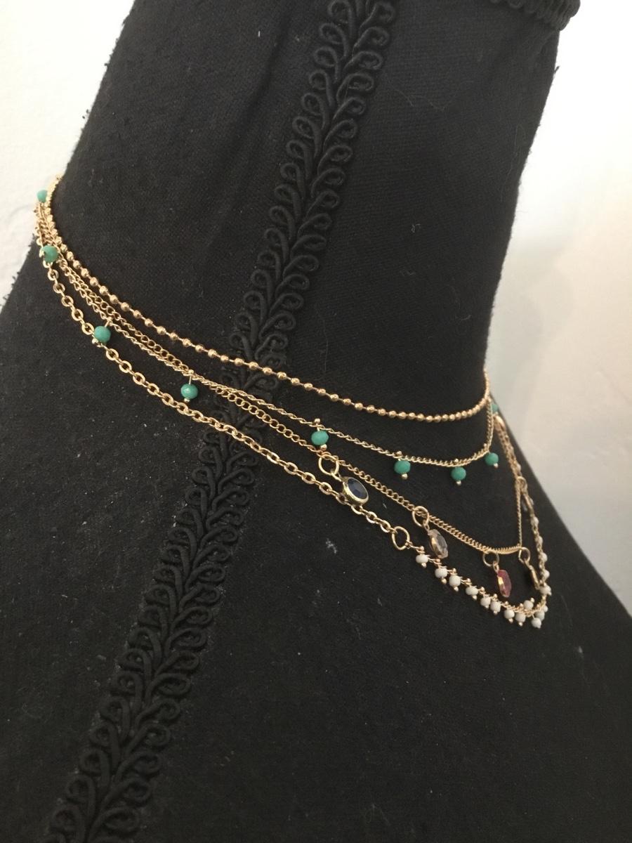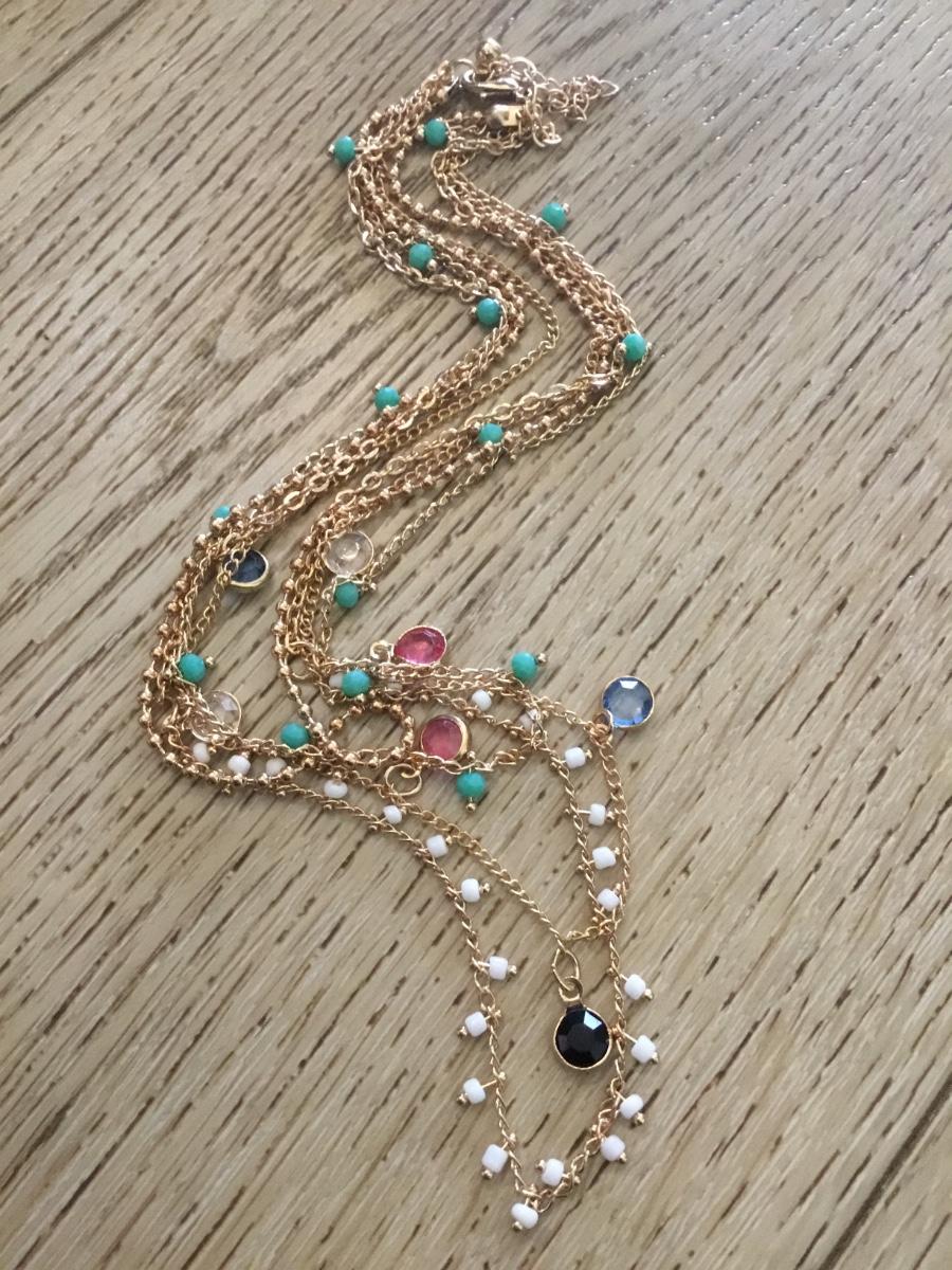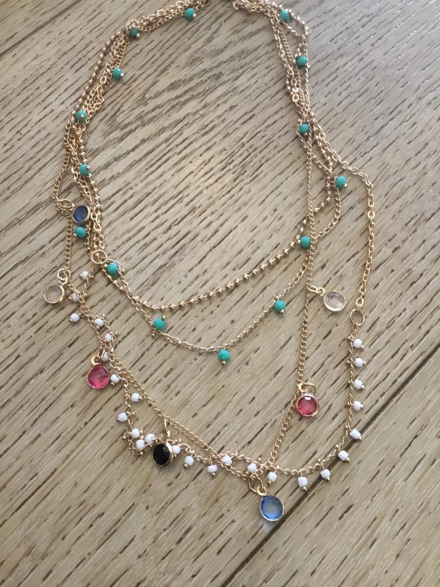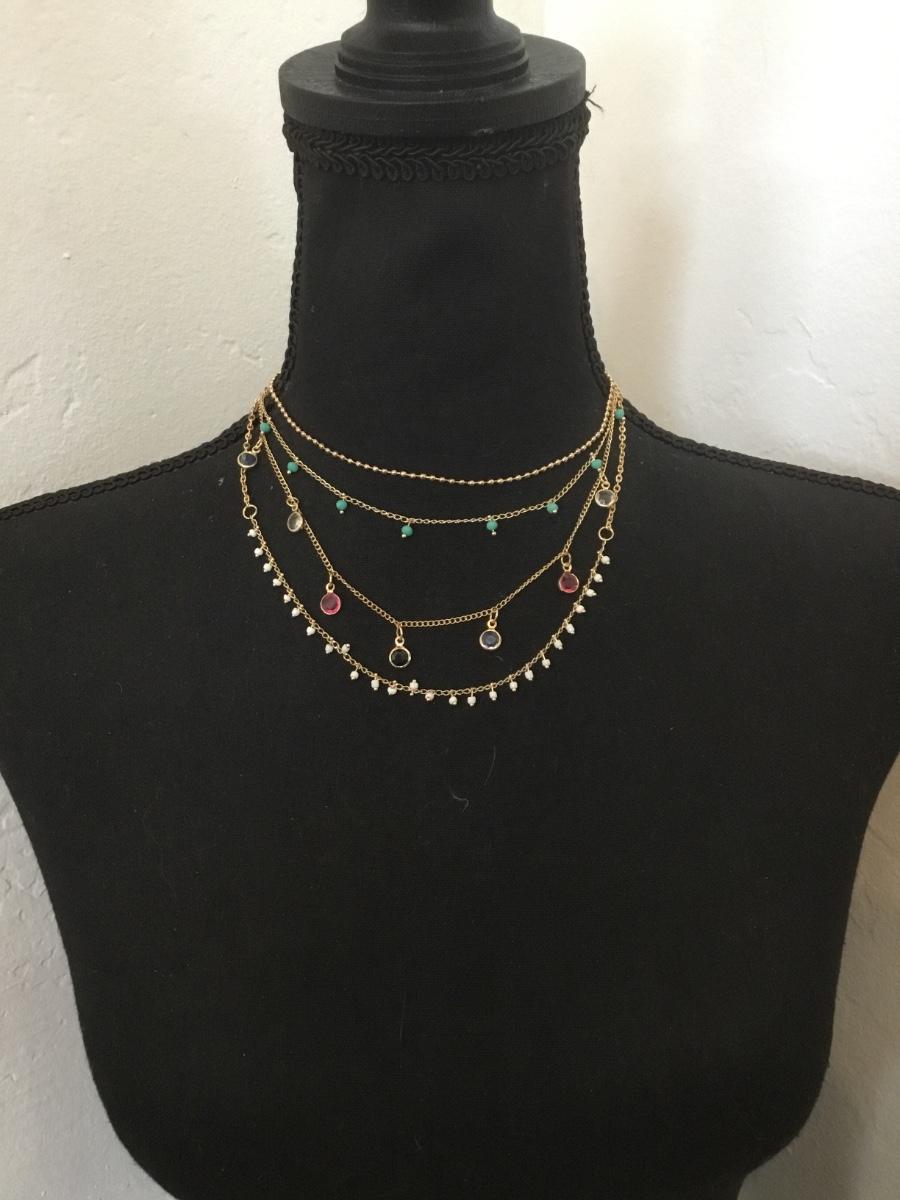 Beautiful, gold tone, multicolored BoHo style multi strand, layered necklace