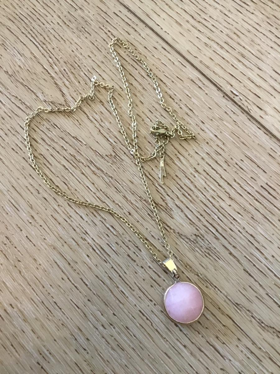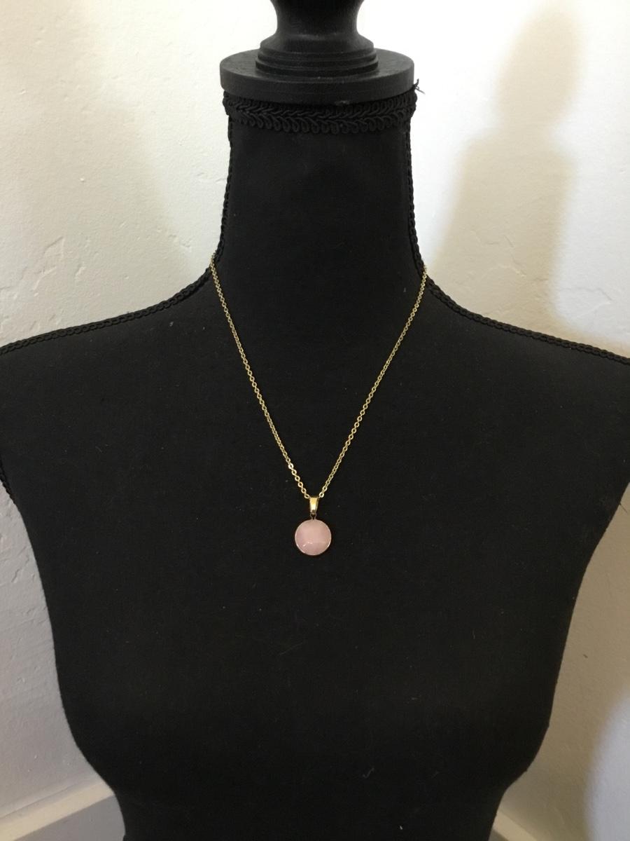 Beautiful, gold tone, rose quartz, pendant necklace very nice quality