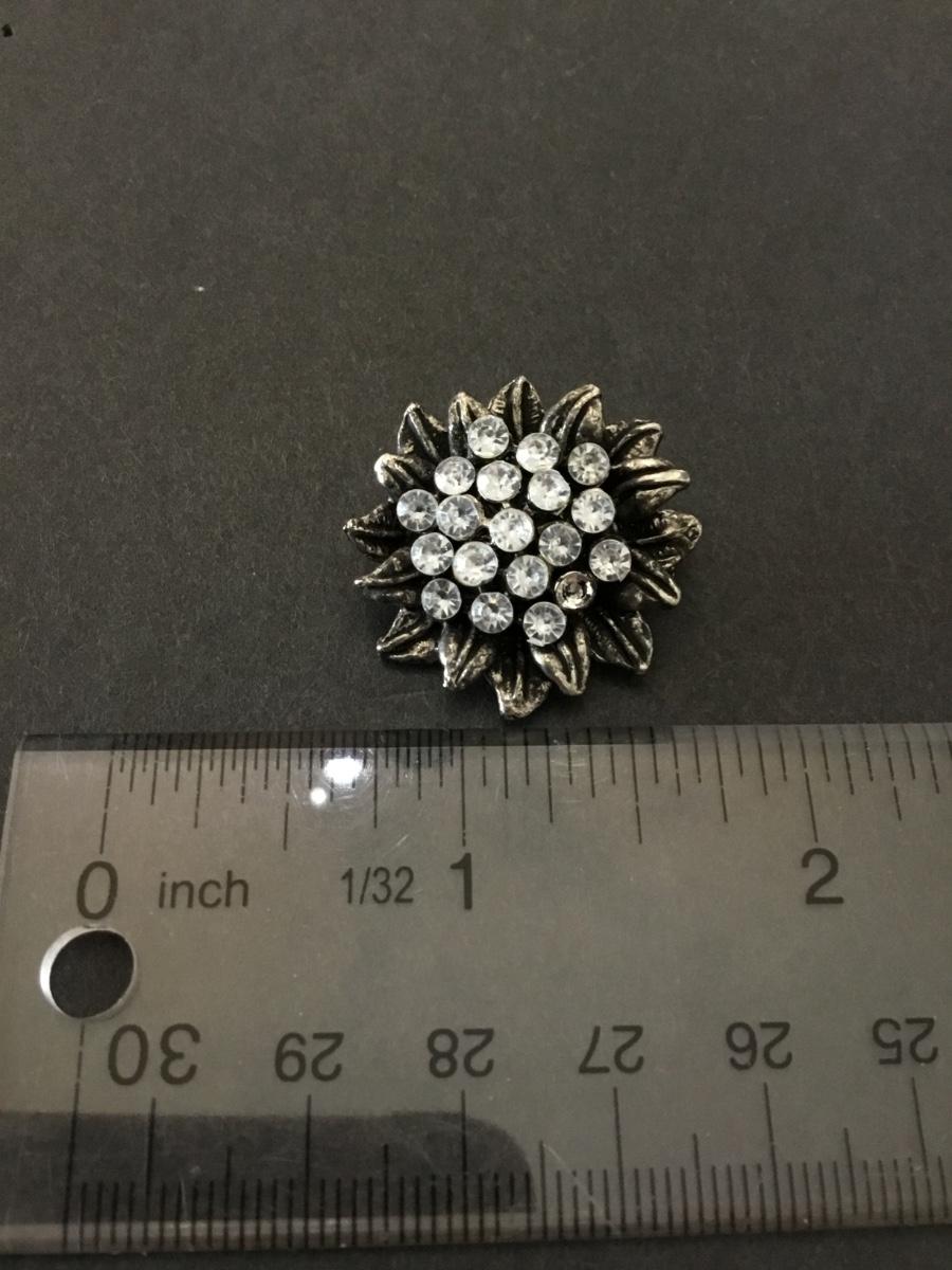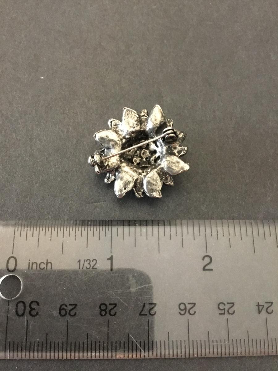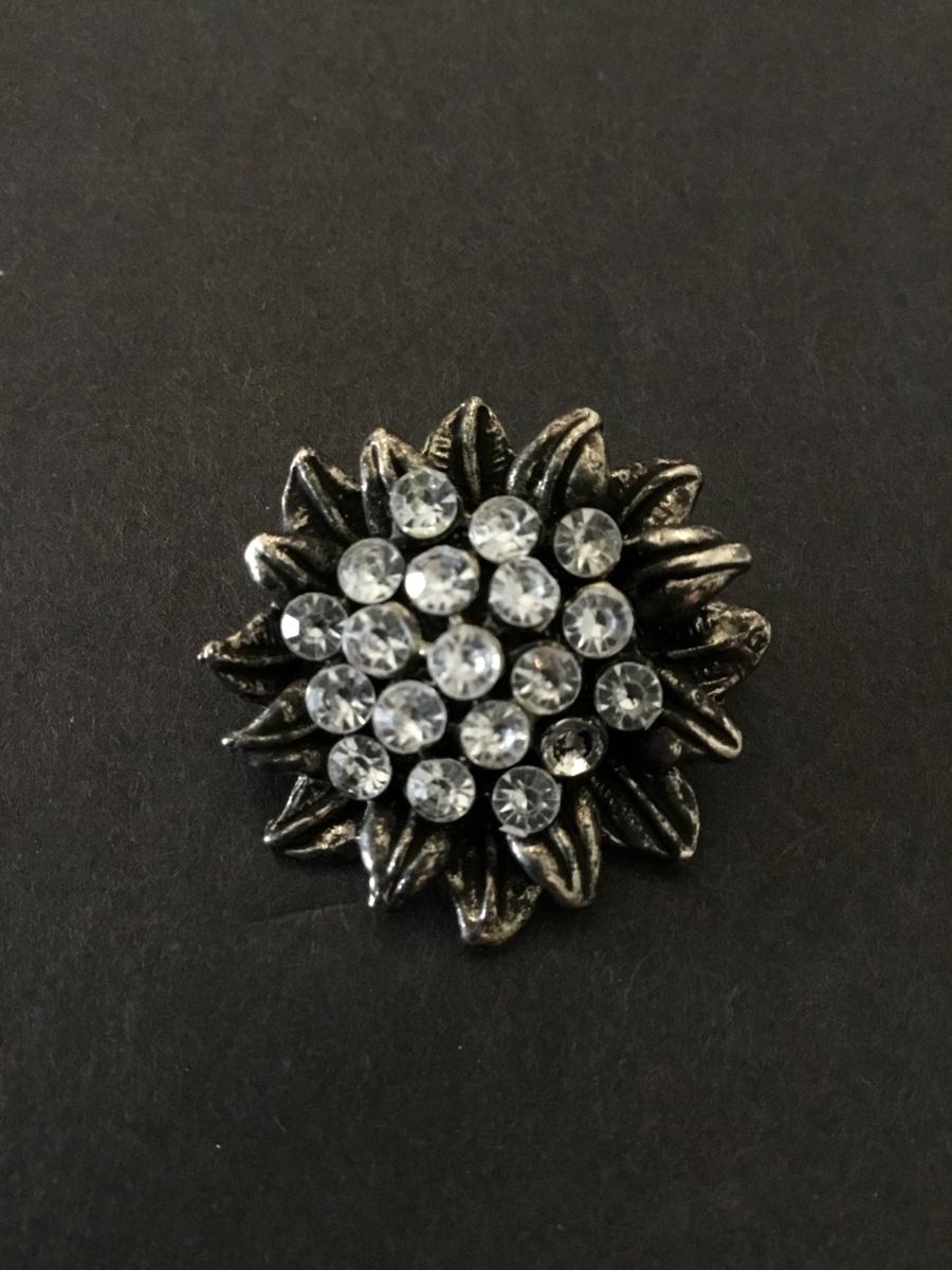 Beautiful gun, metal, gray rhinestone, flower, brooch