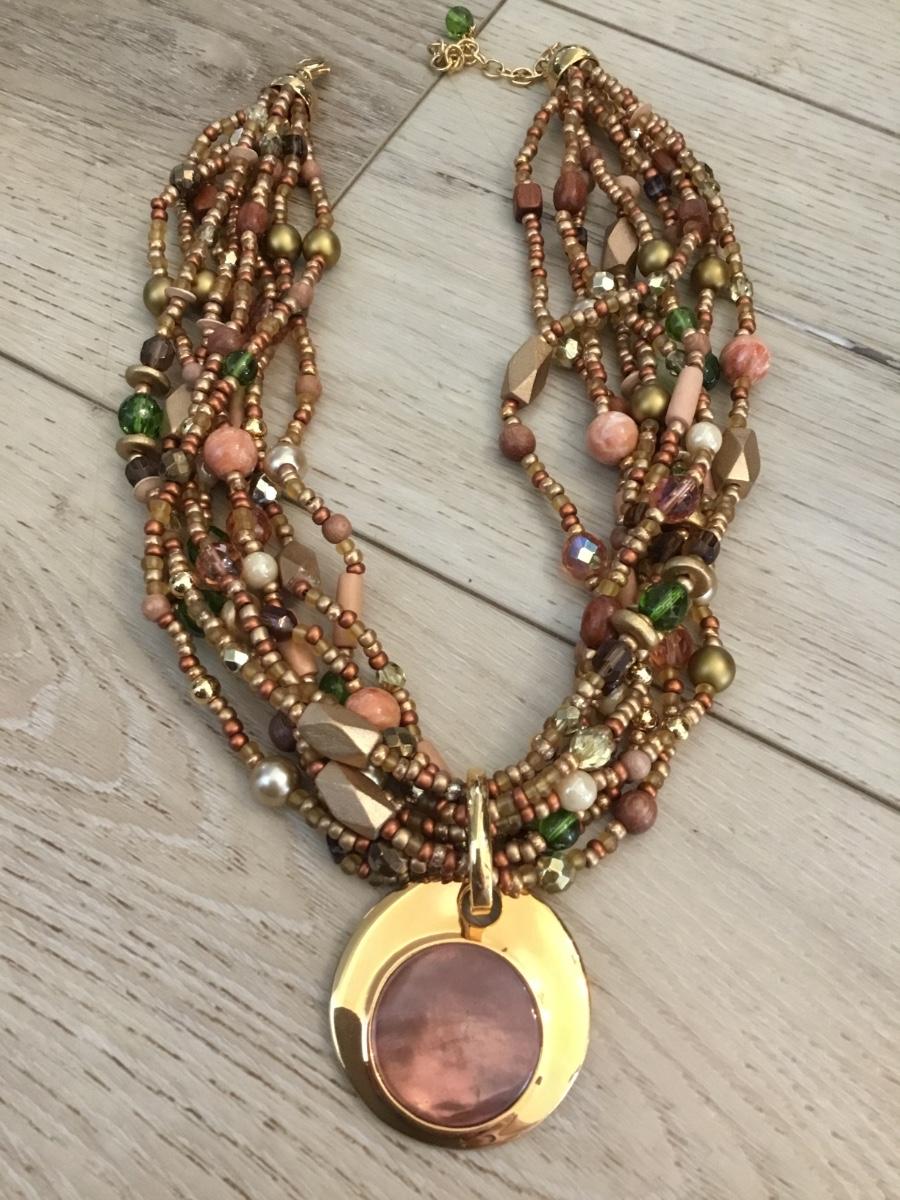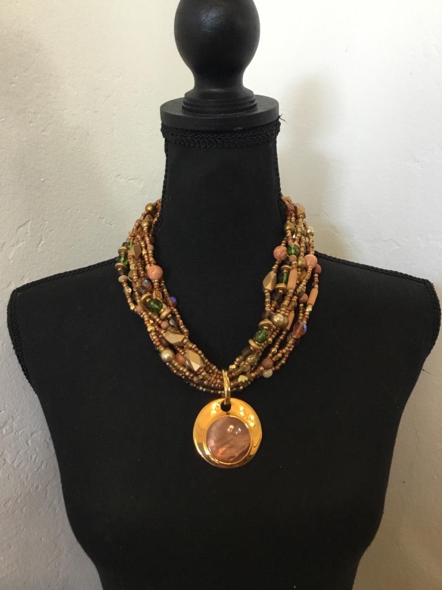Beautiful Joan Rivers, multi colored glass bead, gold tone, statement, necklace