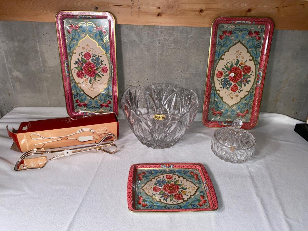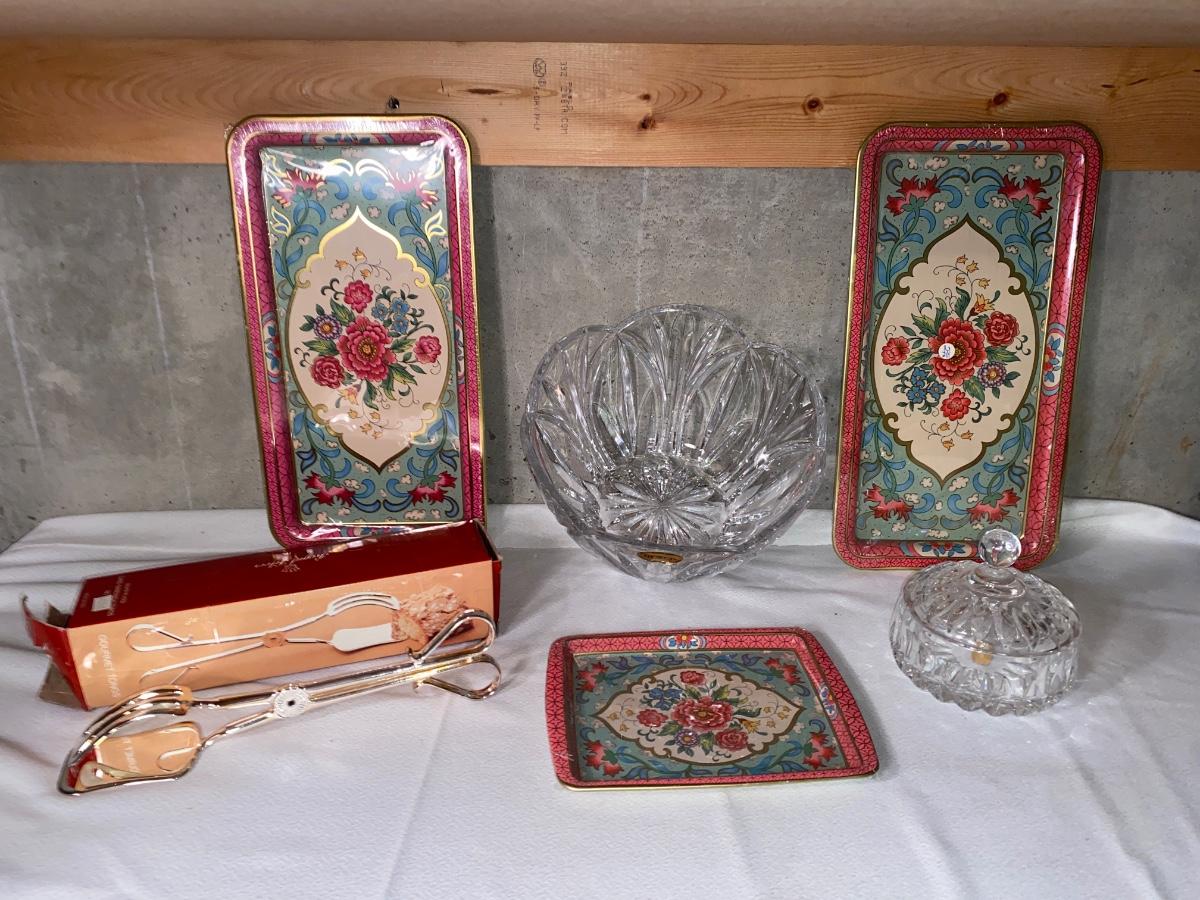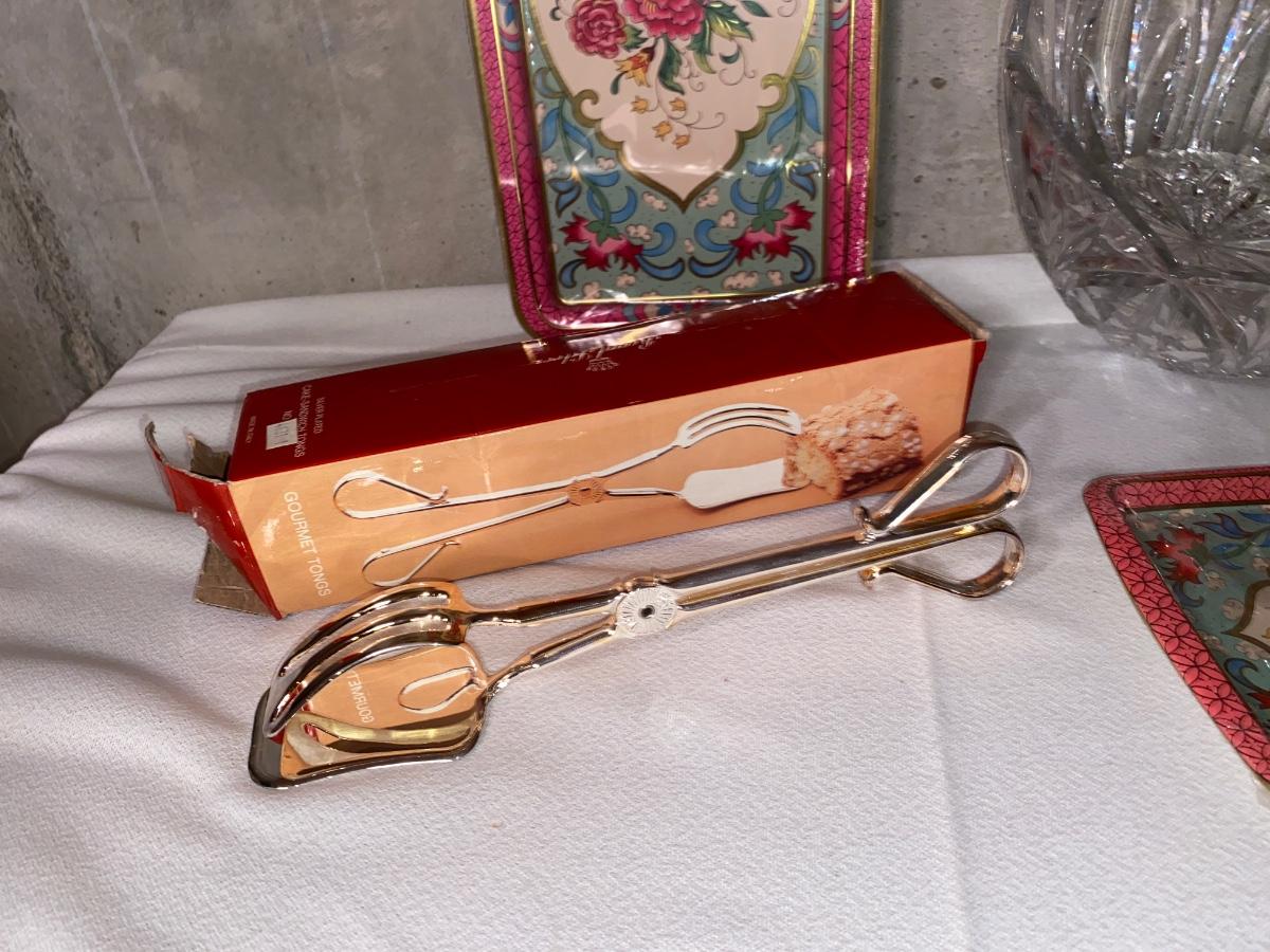 BEAUTIFUL LEAD CRYSTAL BOWL, ROYAL SILVER PLATED TONGS, AND MORE!