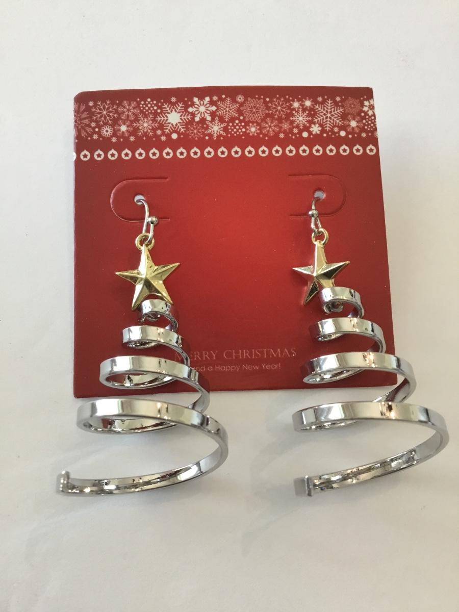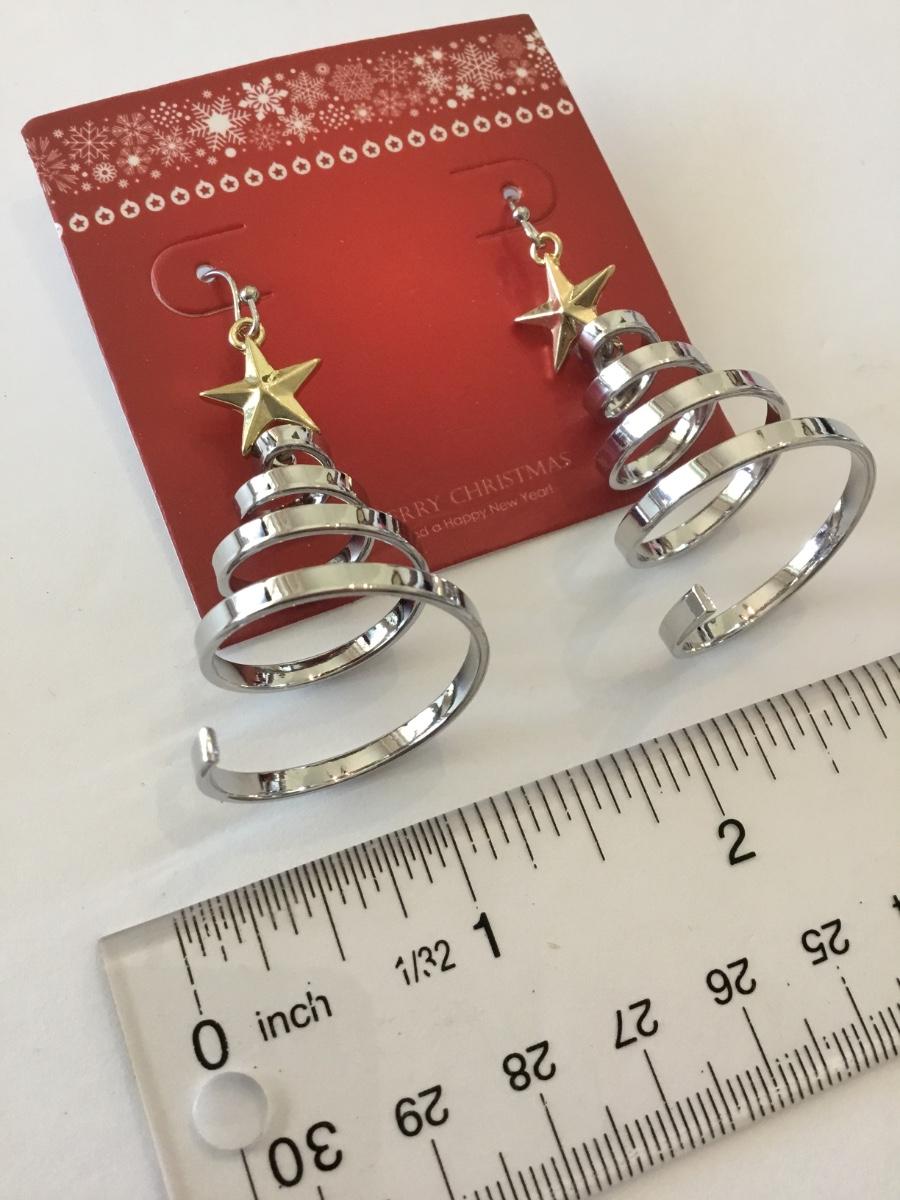 Beautiful new spiral Christmas tree, silver and gold tone, statement earrings