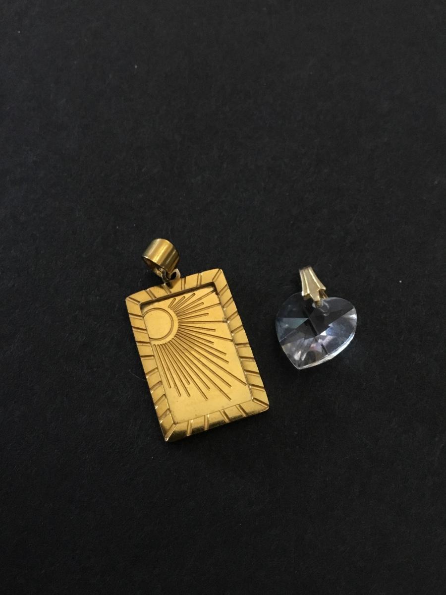 Beautiful pendants, crystal heart pendant and Sunburst stainless steel gold tone pendant