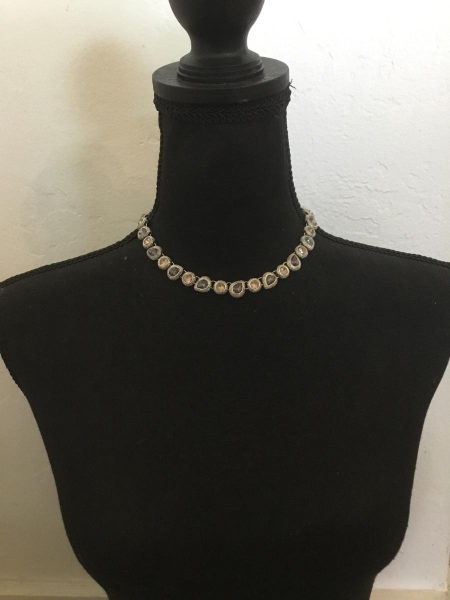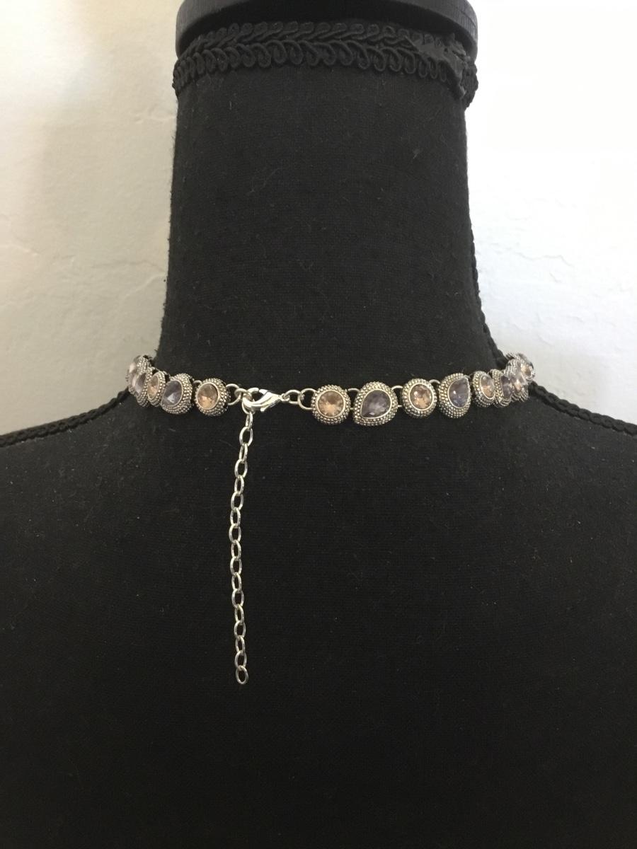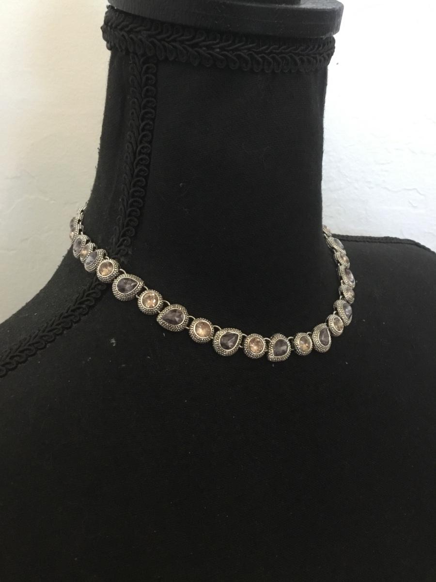 Beautiful Silver tone, gray and purple pink rhinestone collar necklace