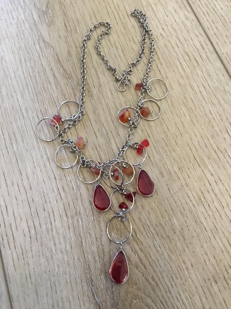 Beautiful Silvertone, gemstone statement, necklace