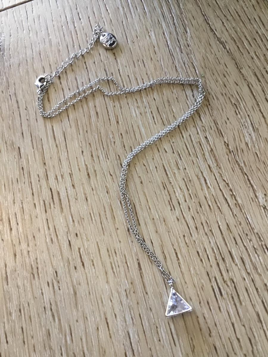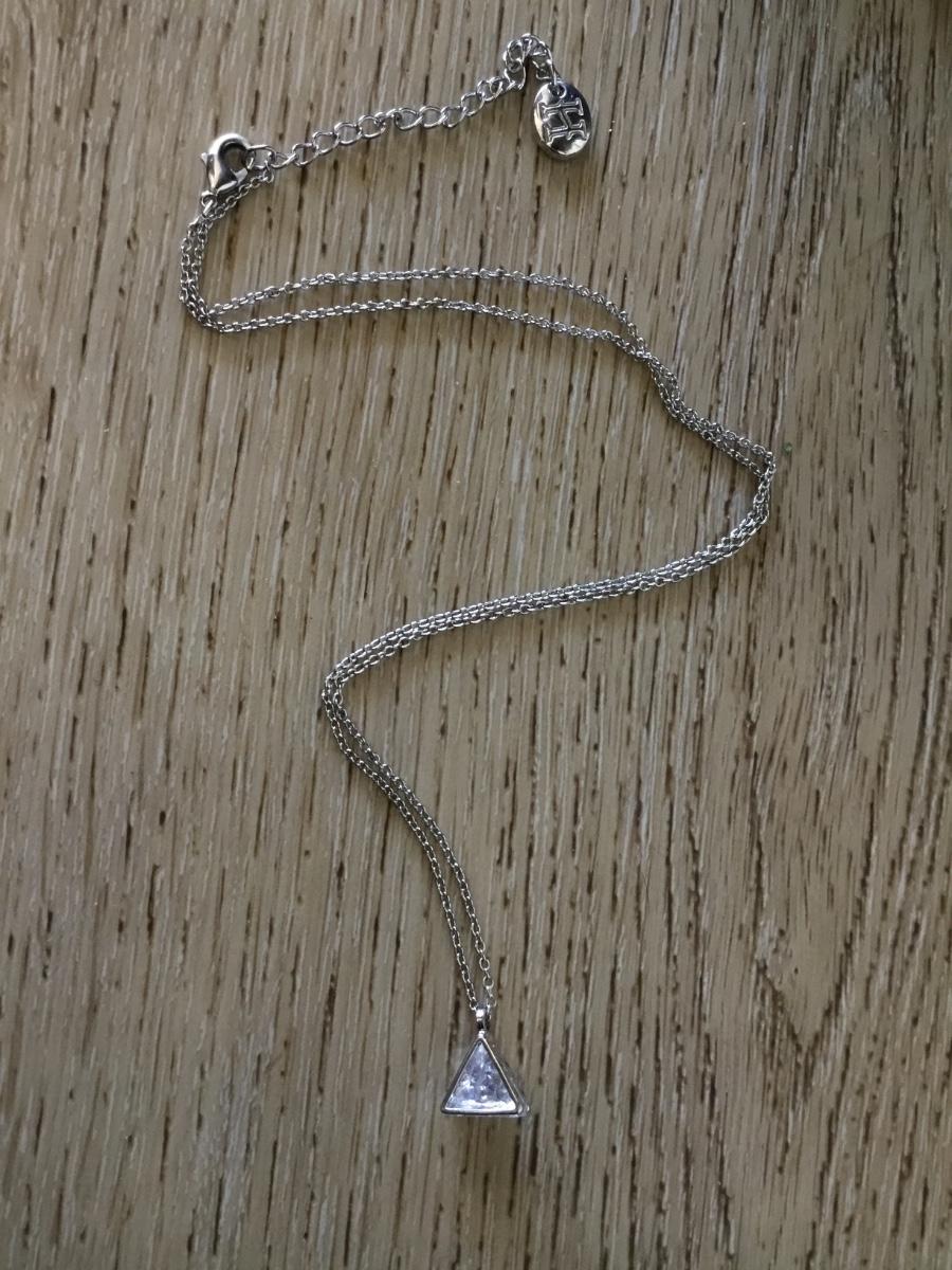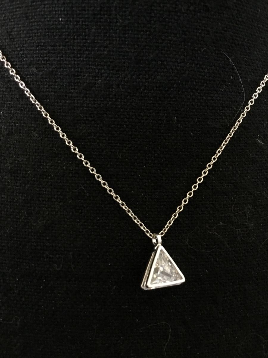 Beautiful, tiny, sparkling triangle, pendant, necklace, silver plated