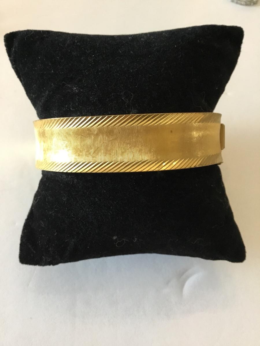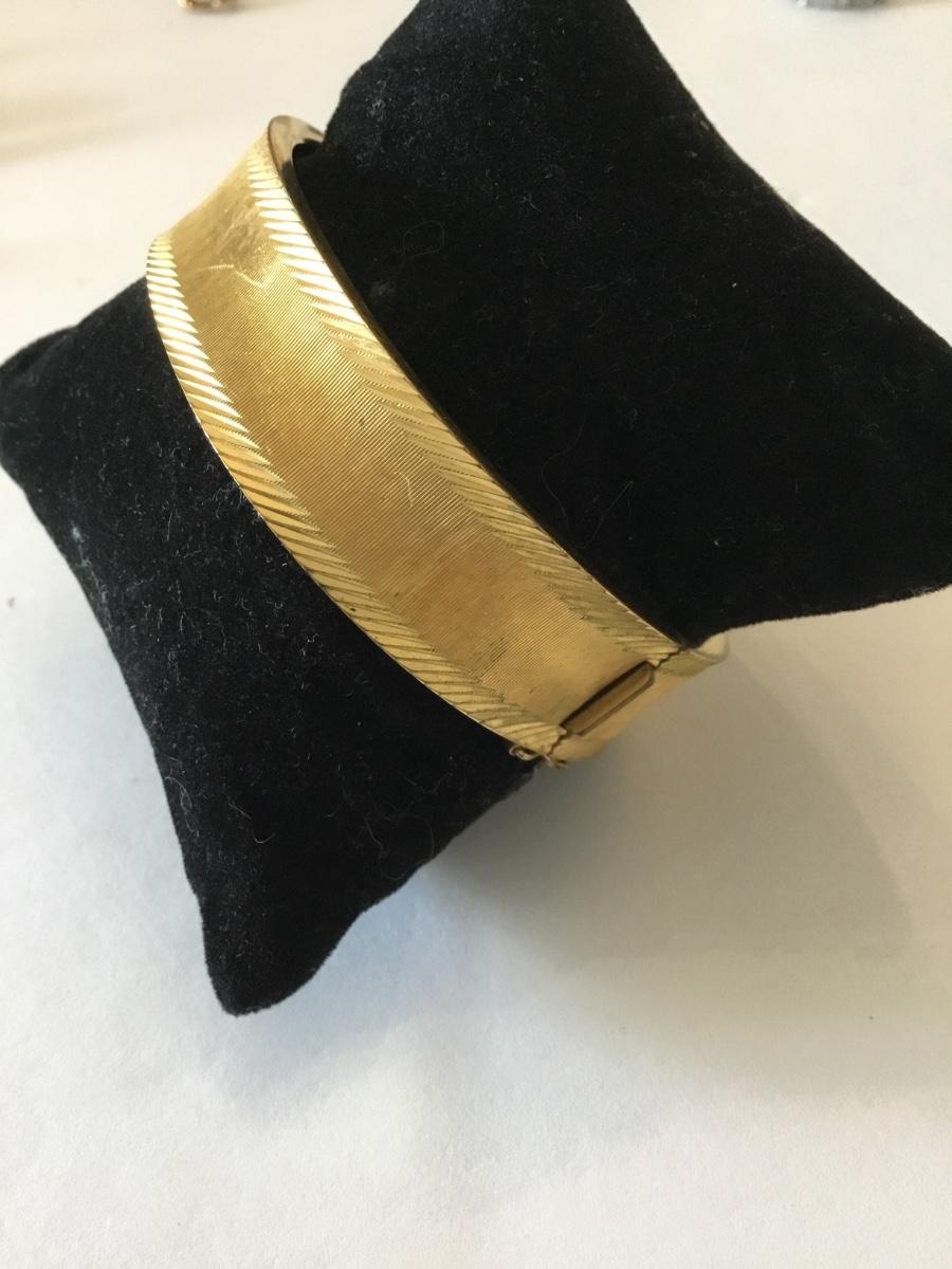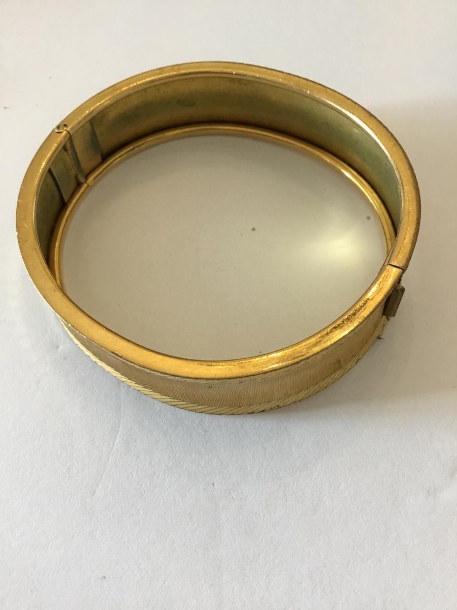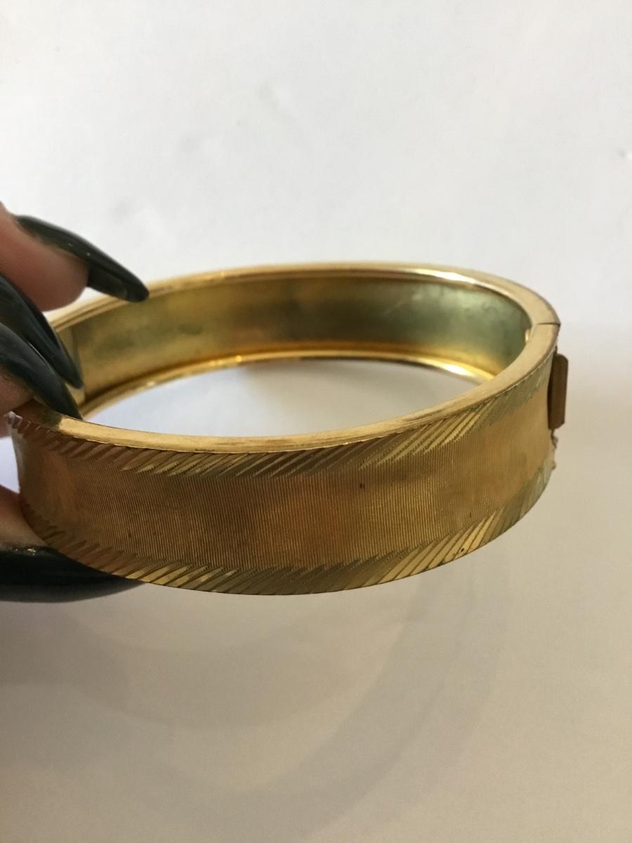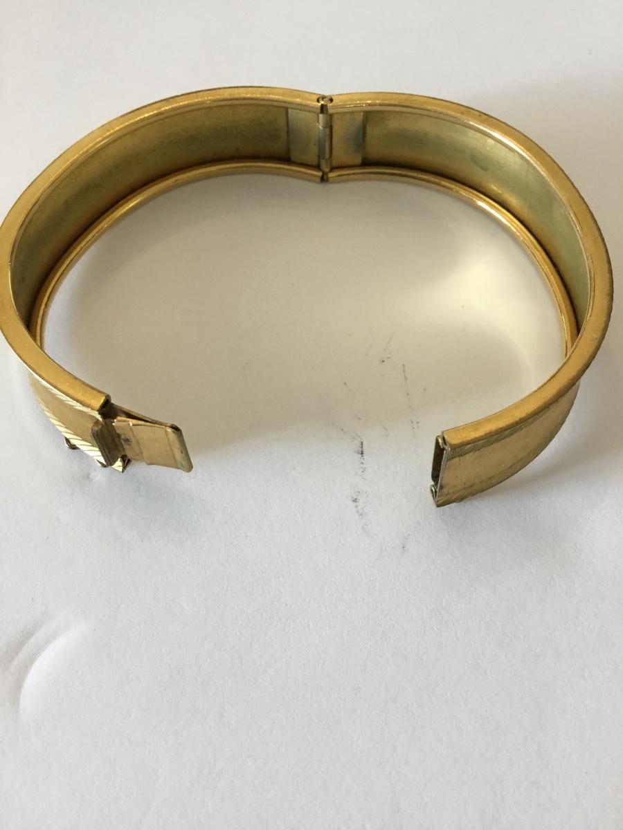 Beautiful vantage, gold tone hinged bangle bracelet with safety clasp