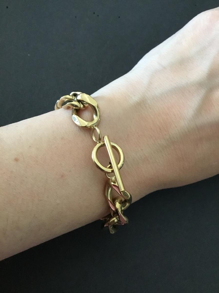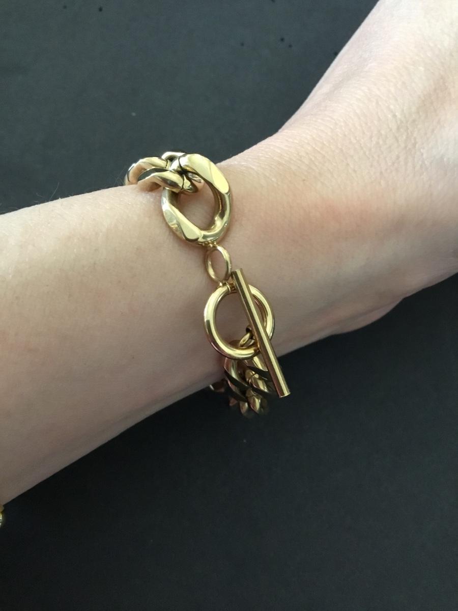 Beautiful very nice gold tone stainless steel toggle bracelet