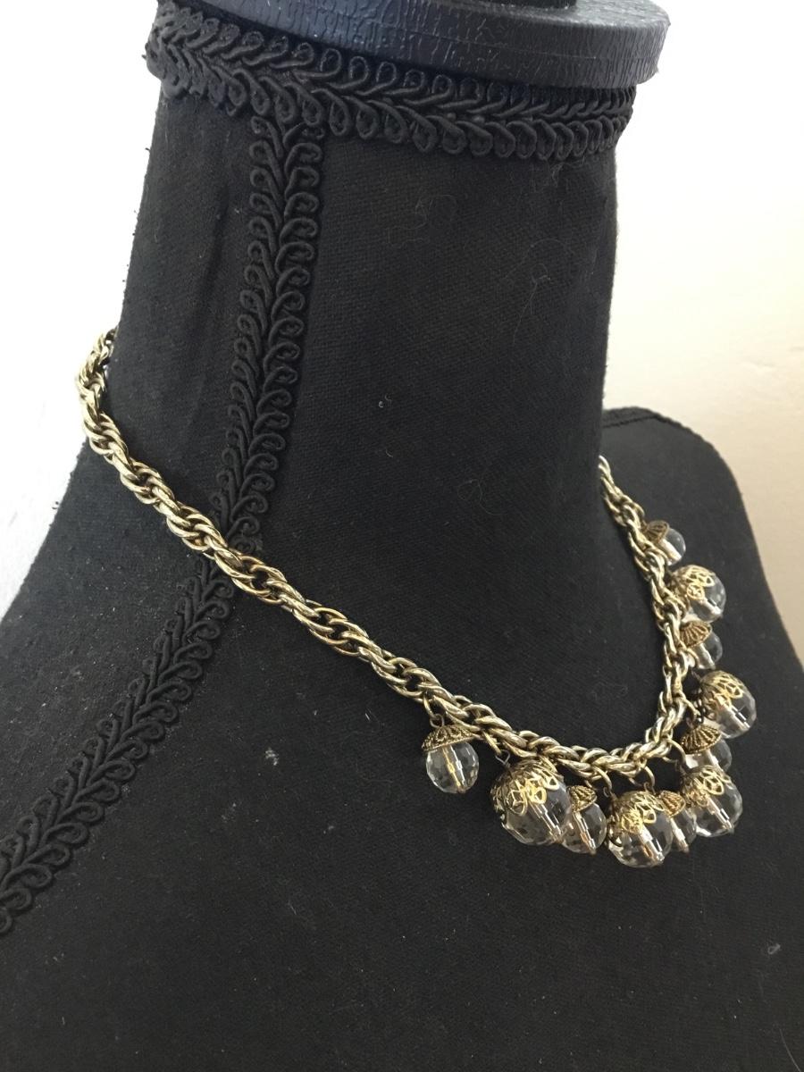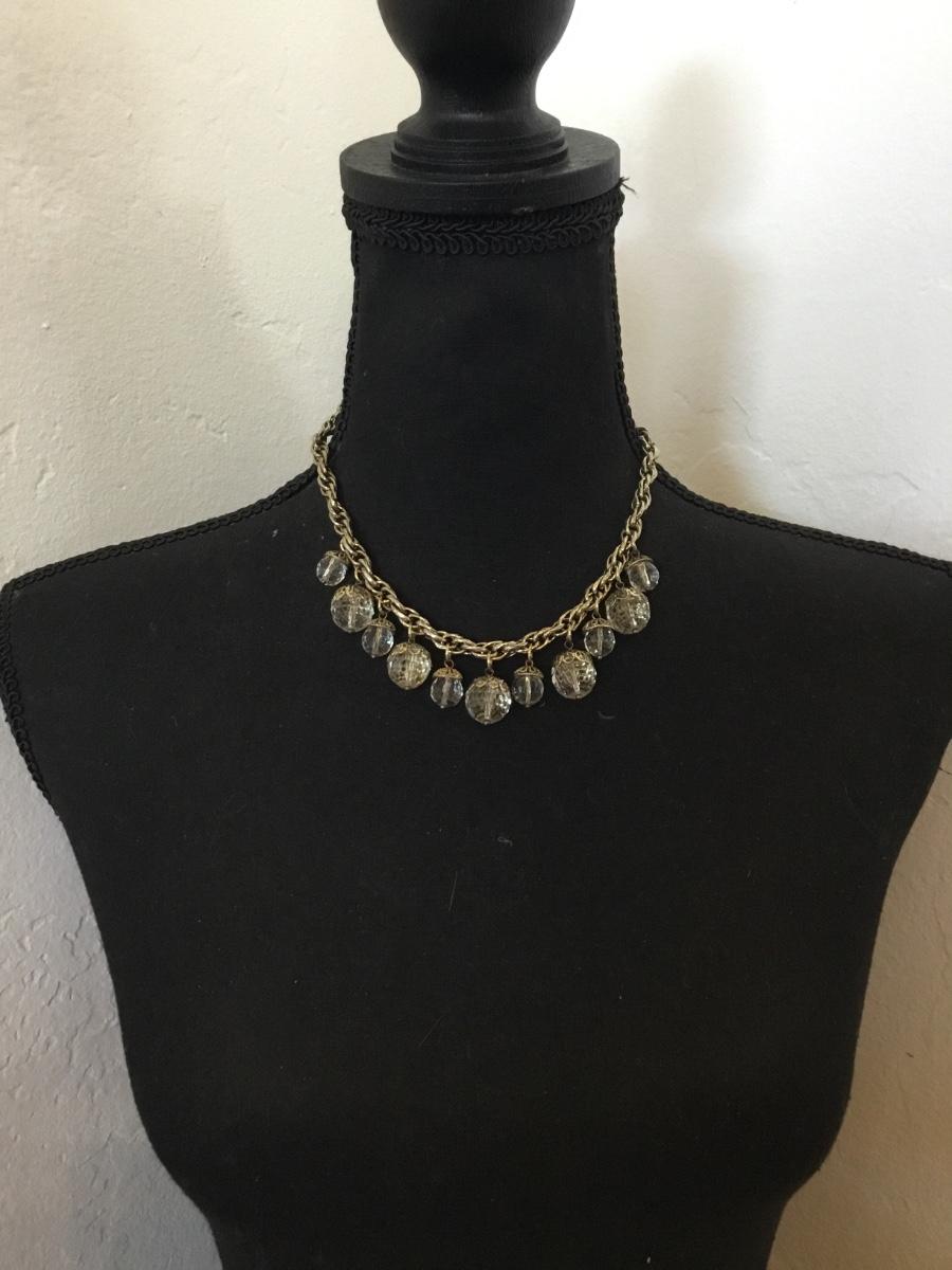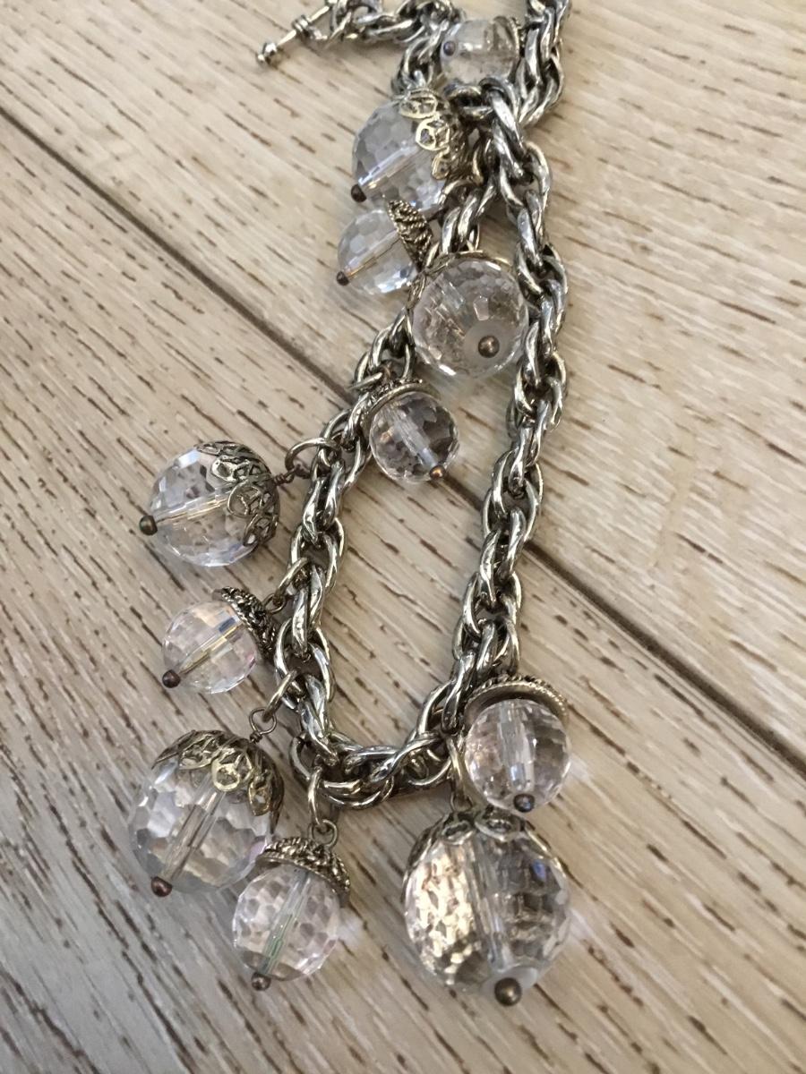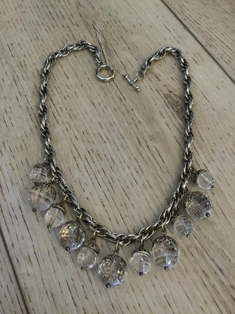 Beautiful, very nice, vintage, thick chunky, silver tone, vintage, crystal ball, charm, toggle statement, necklace