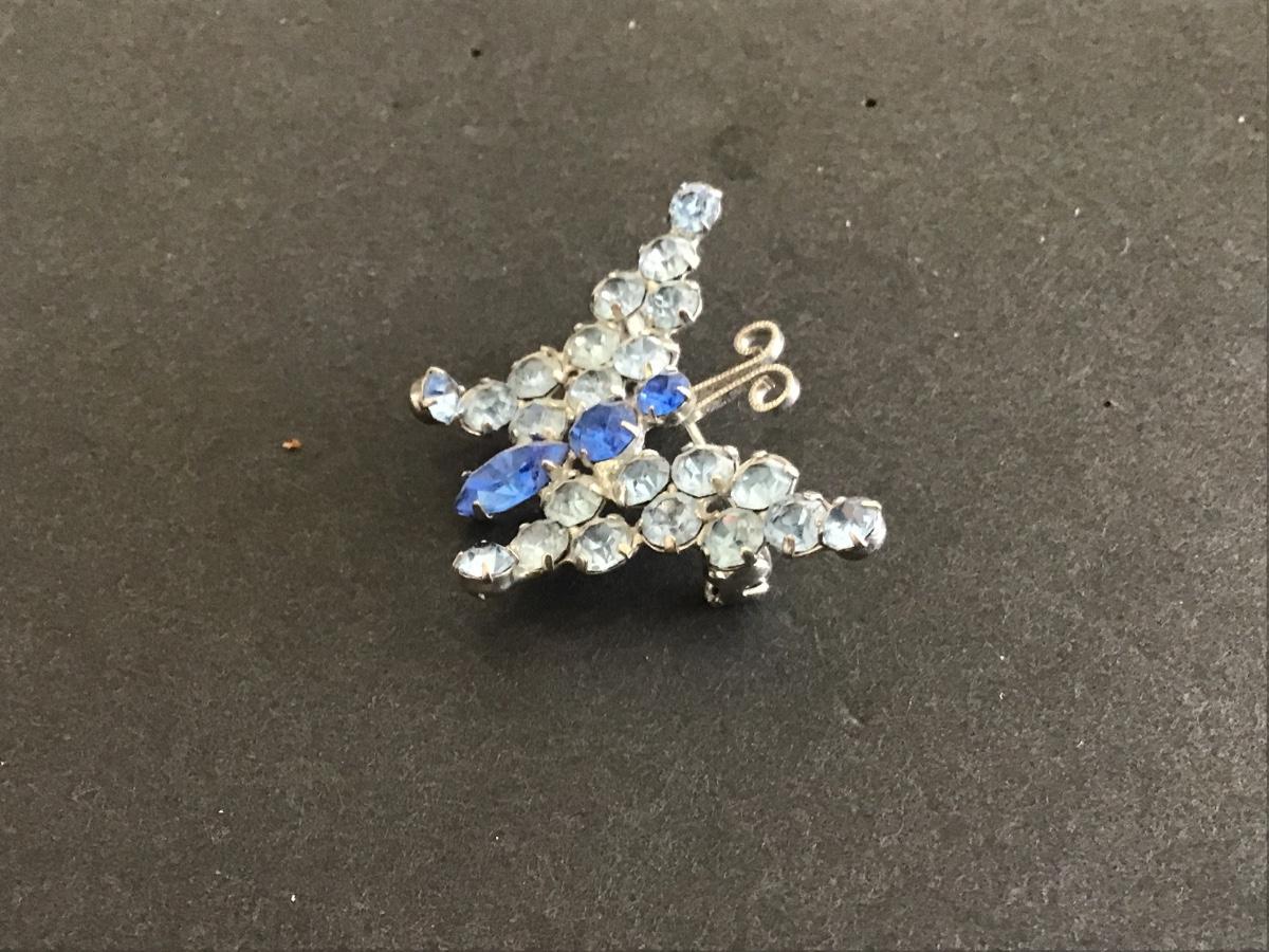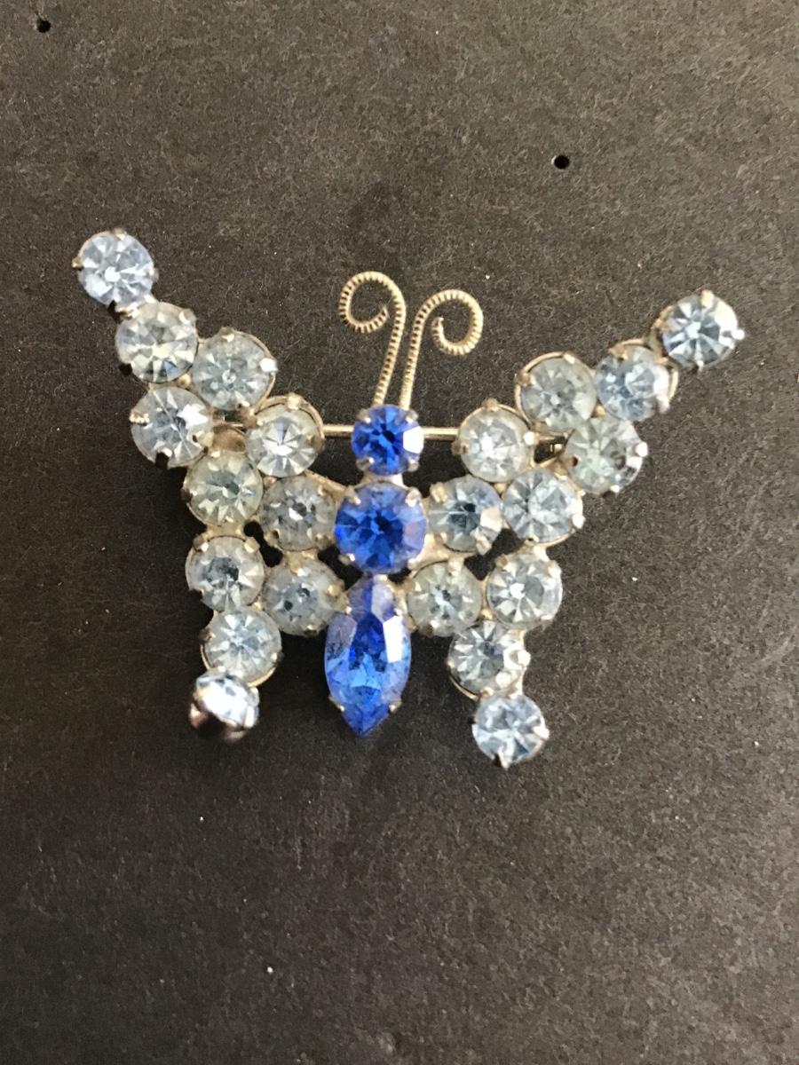 Beautiful Vintage Blue Rhinestone Butterfly Pin
