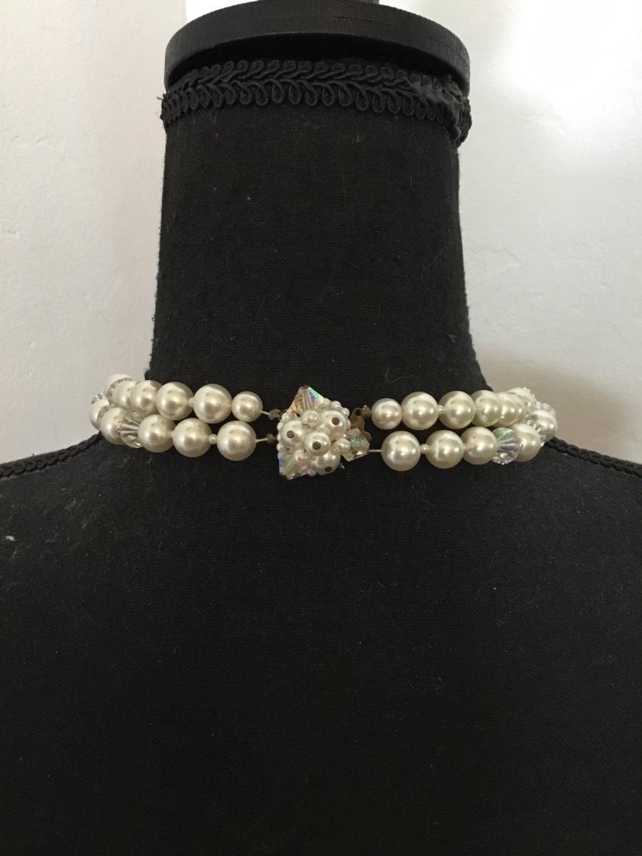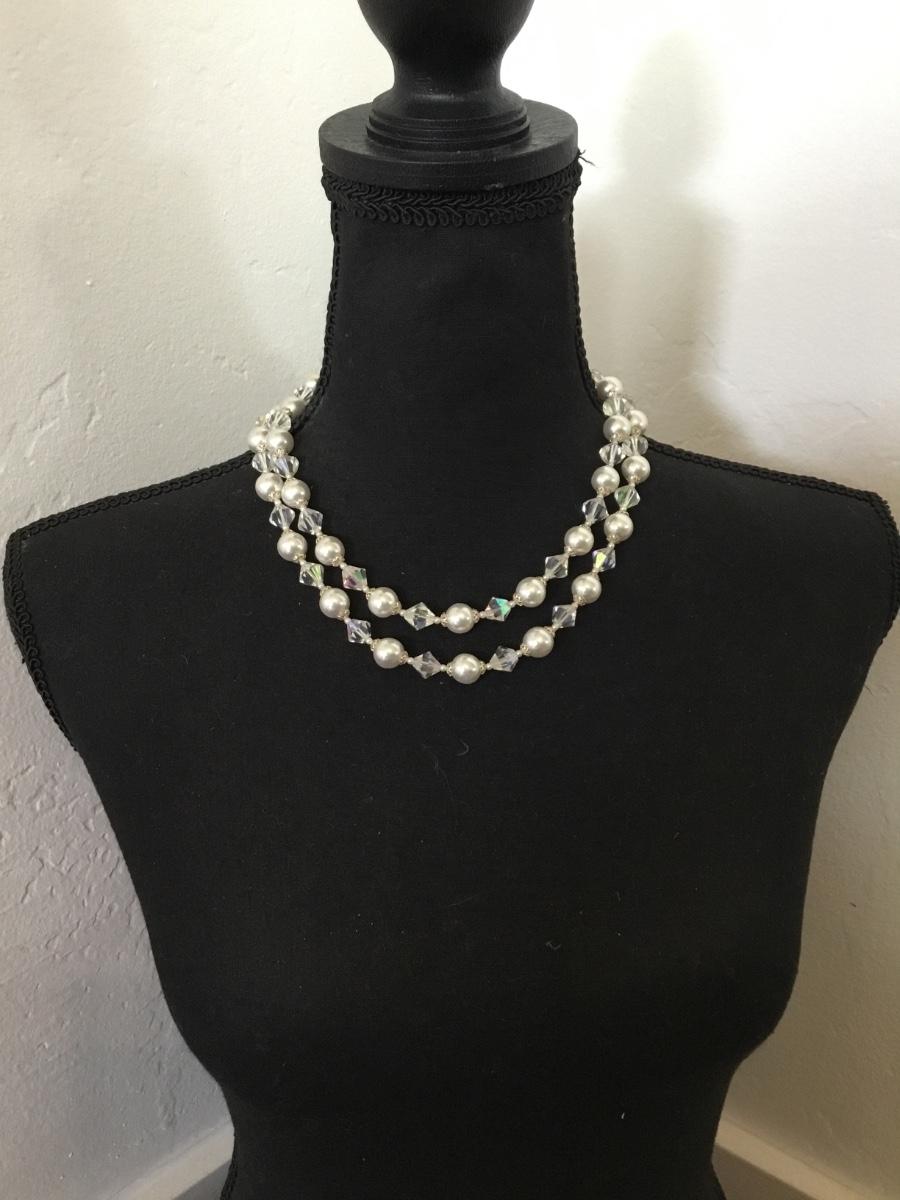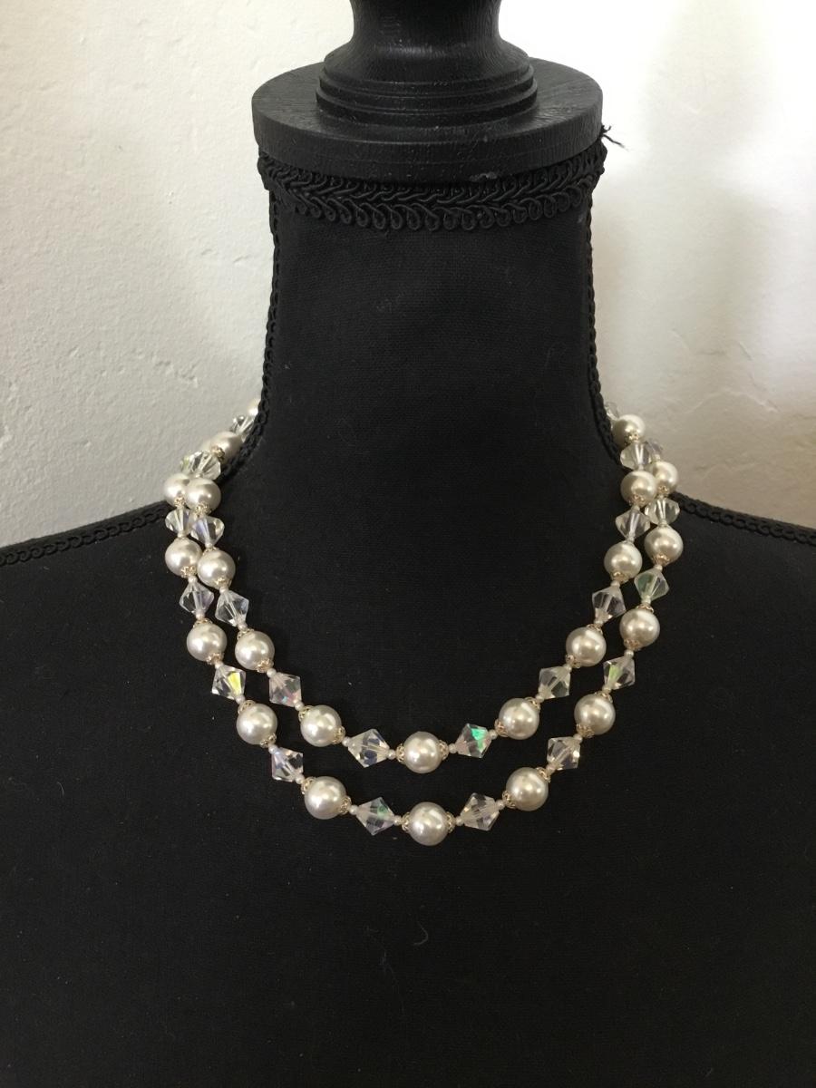 Beautiful, vintage, faux, pearl bead, and Crystal bead statement necklace