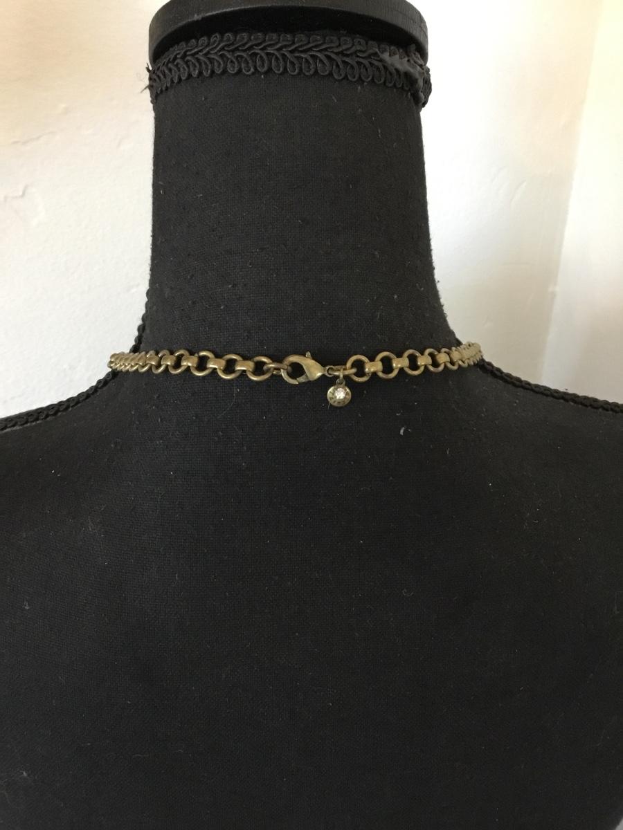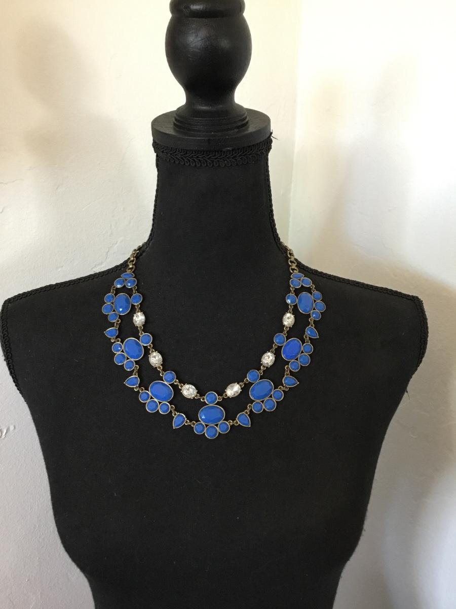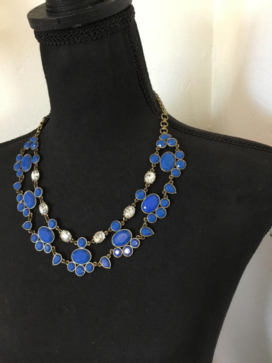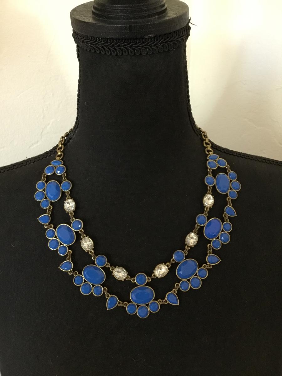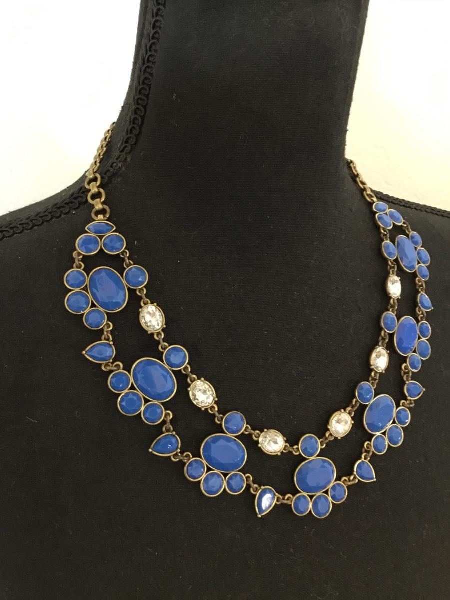 Beautiful vintage, J.Crew, bronze, toned, blue, rhinestone statement, necklace