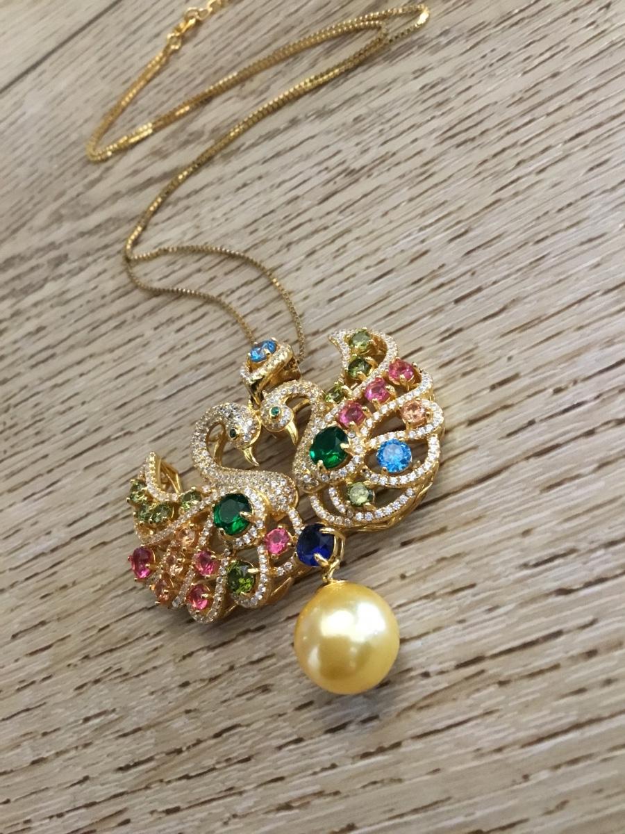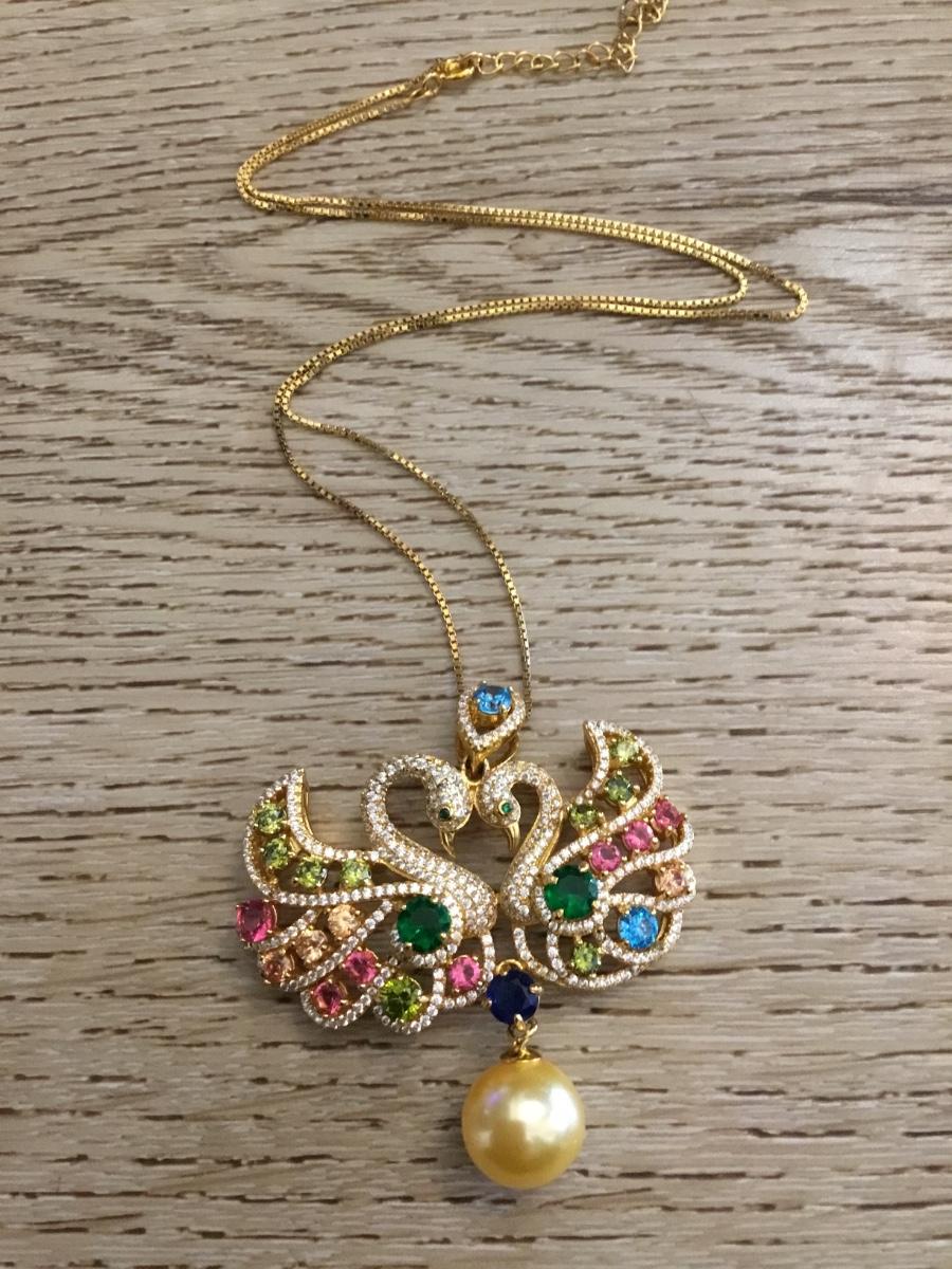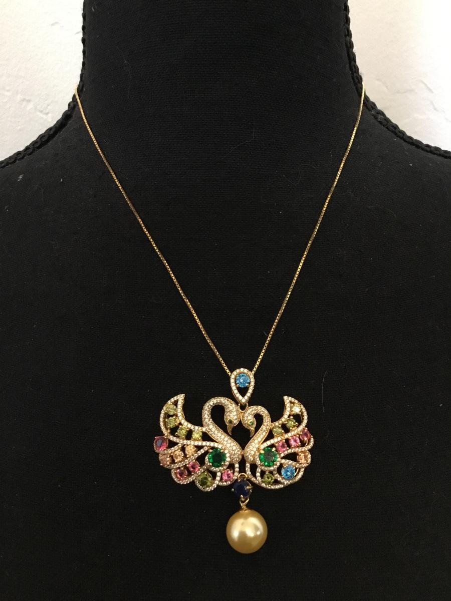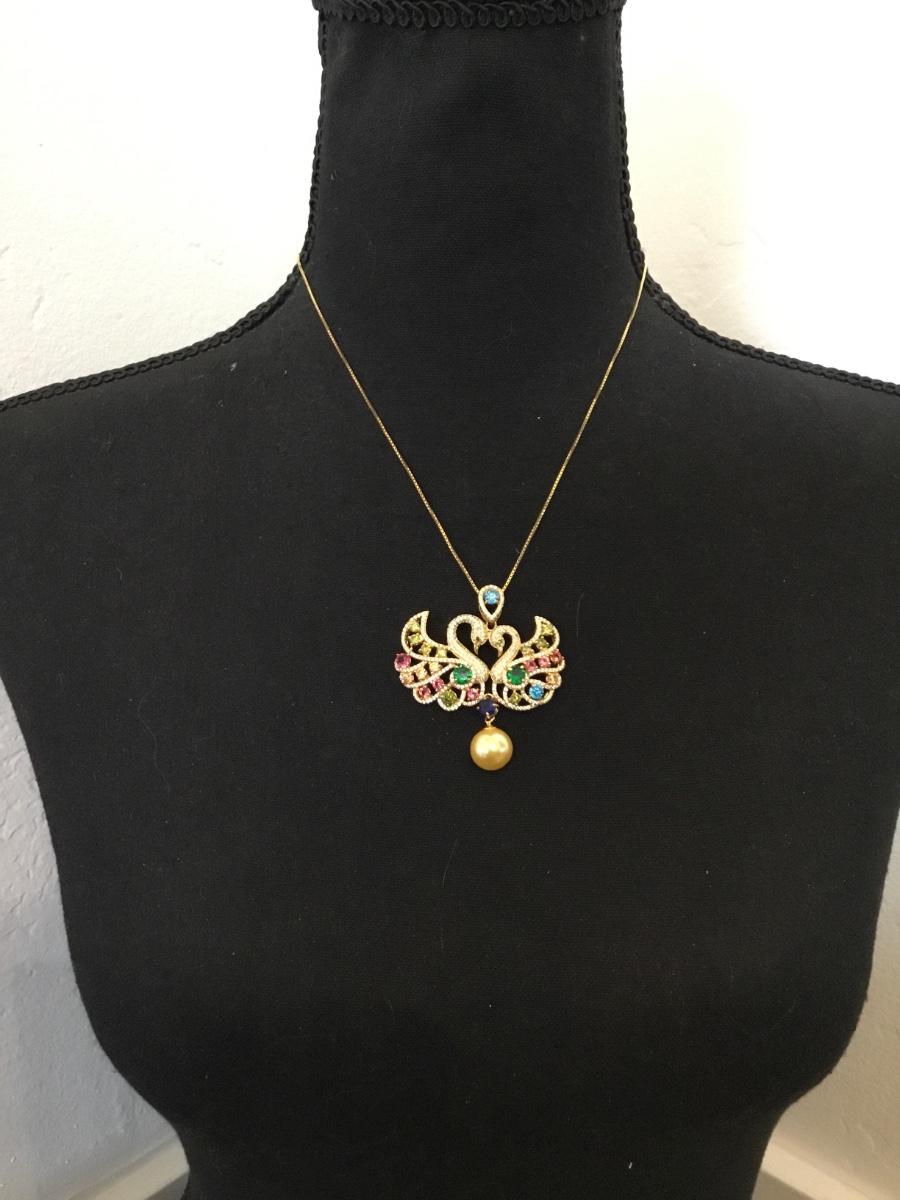 Beautiful vintage, multicolor, gemstone, swan pendant necklace
