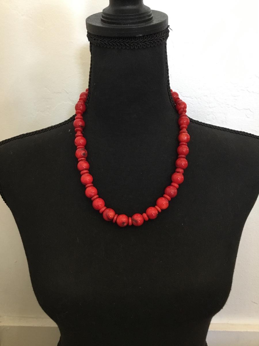Beautiful, vintage, red, coral bead necklace
