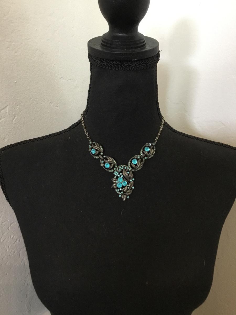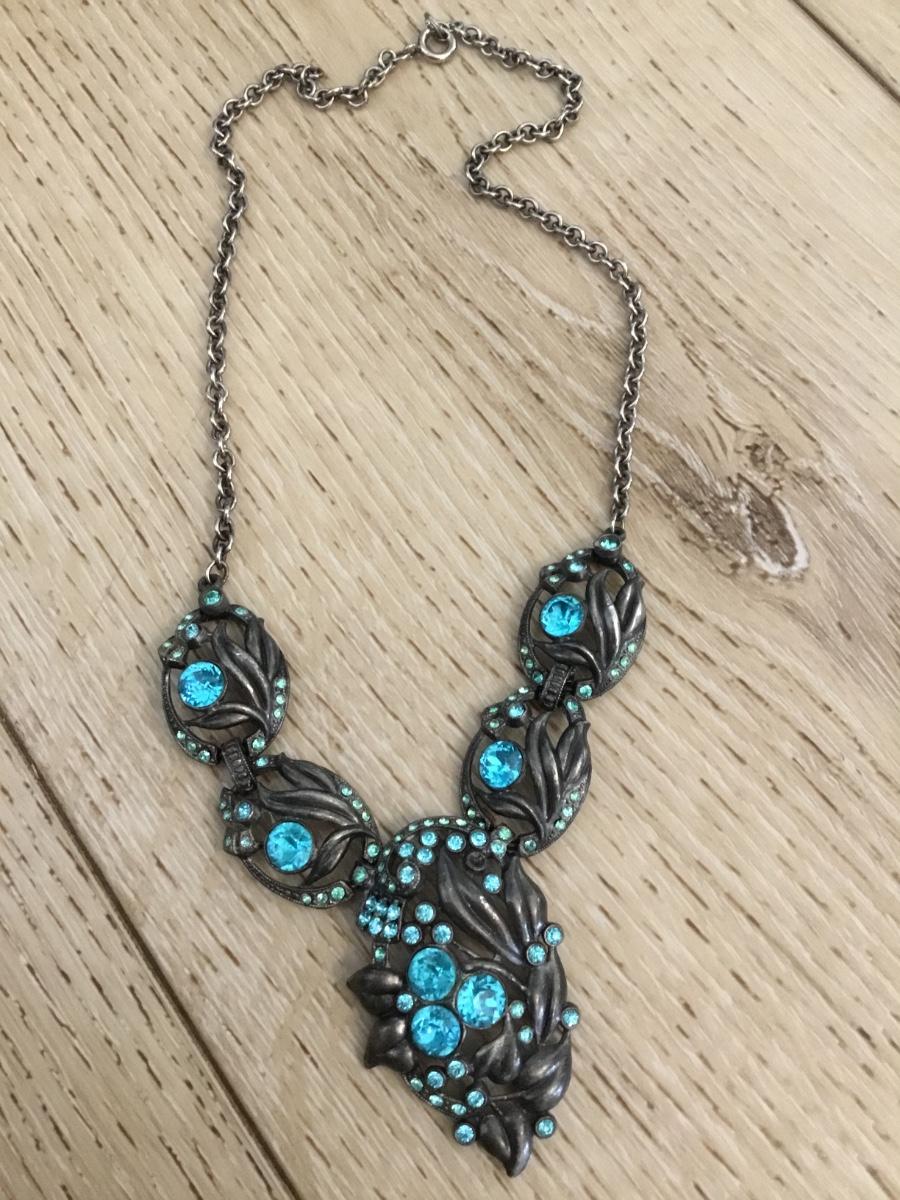 Beautiful vintage Silver tone gorgeous blue rhinestone statement, necklace