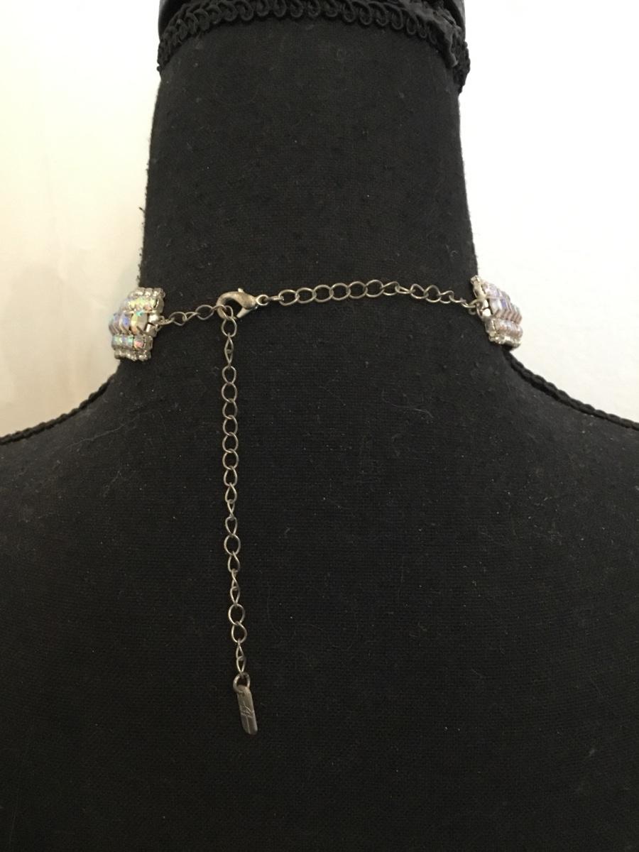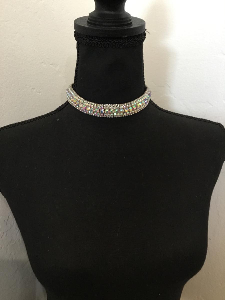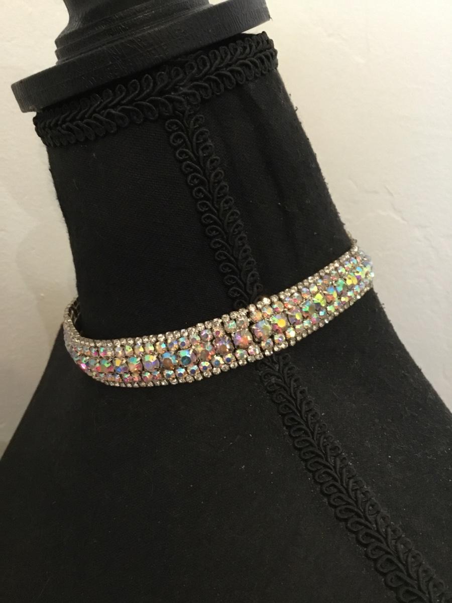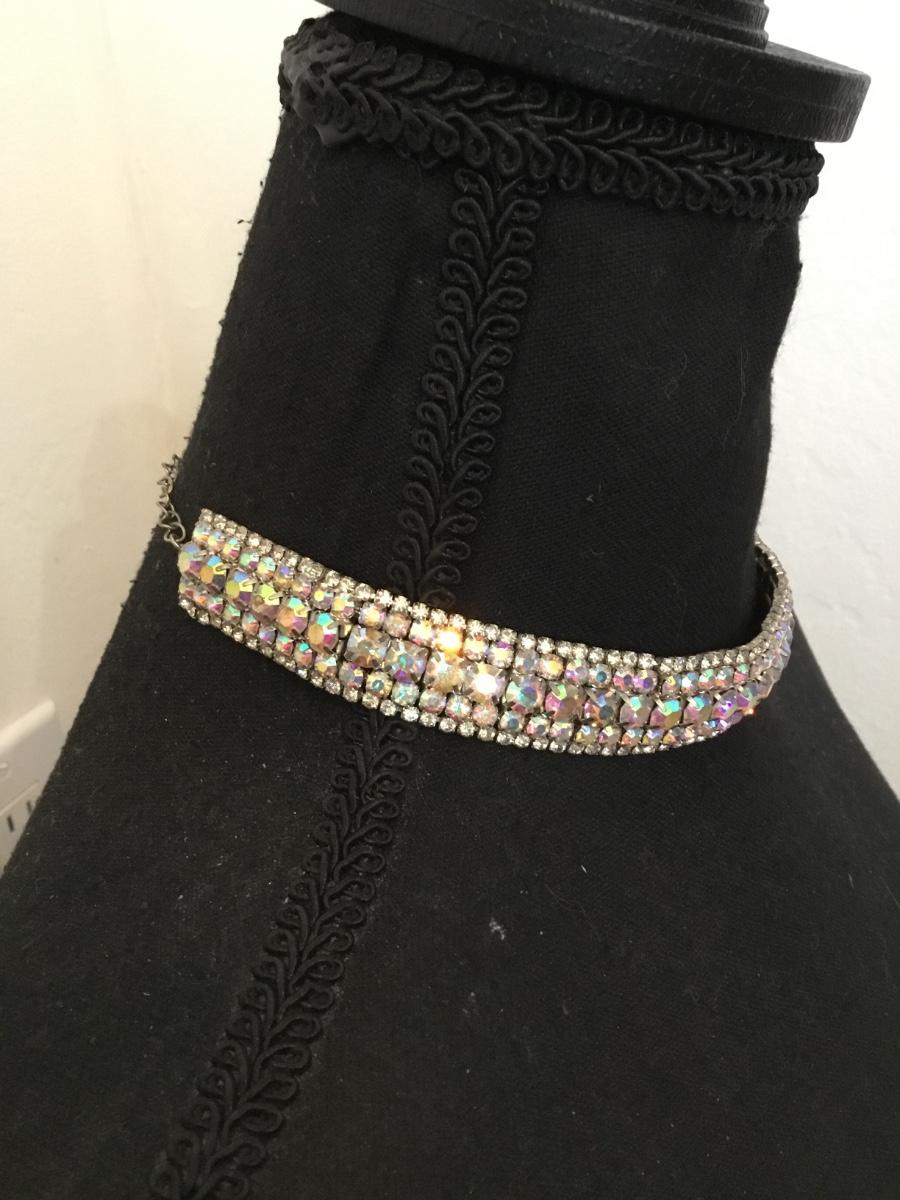 Beautiful vintage, Silver tone, iridescent, rhinestone choker necklace