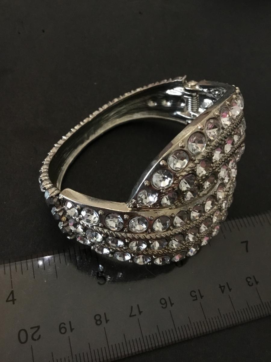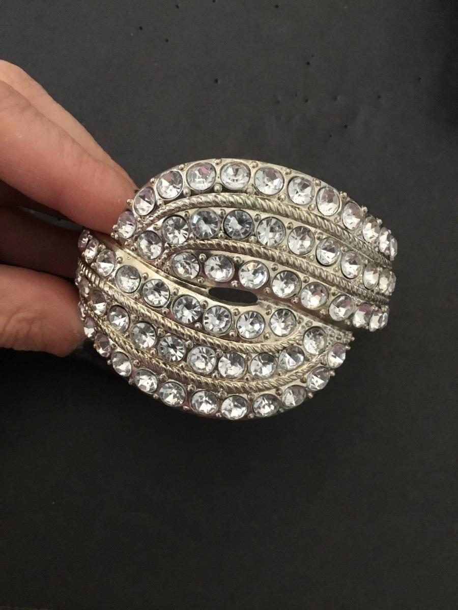 Beautiful vintage silver tone rhinestone hinged statement bracelet