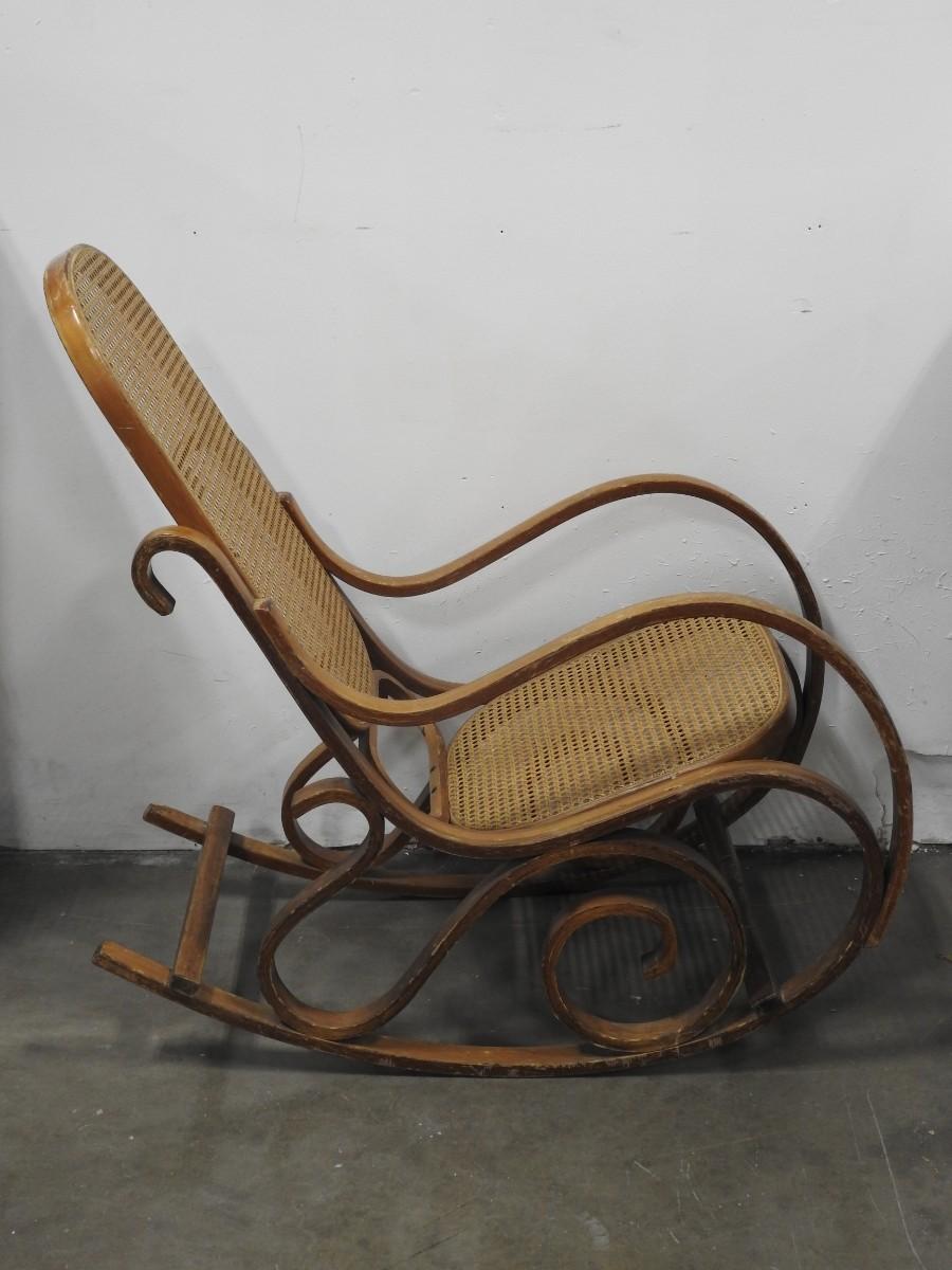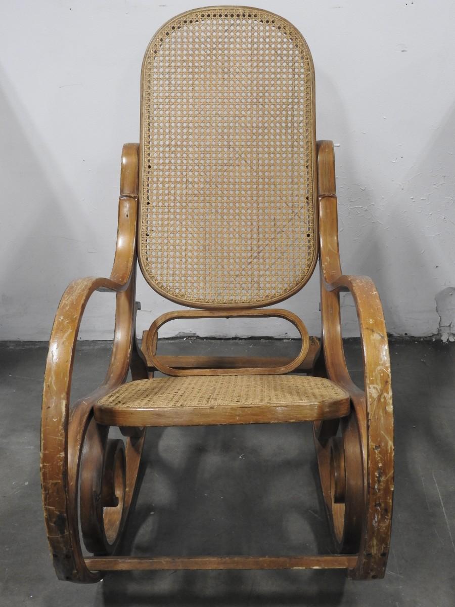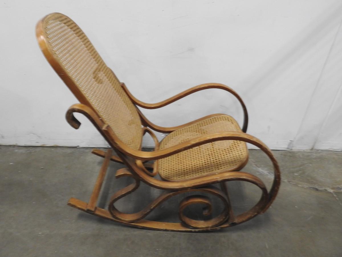 Bentwood Rocking Chair, Wood, Medium Brown w/Wicker, Vintage Style, See Pictures