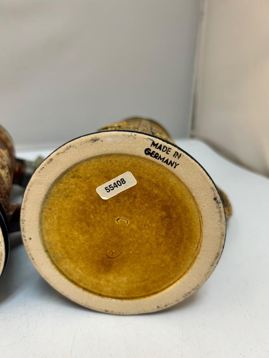Set of Three Brown Monotone Lidded German Beer Steins. In good condition.