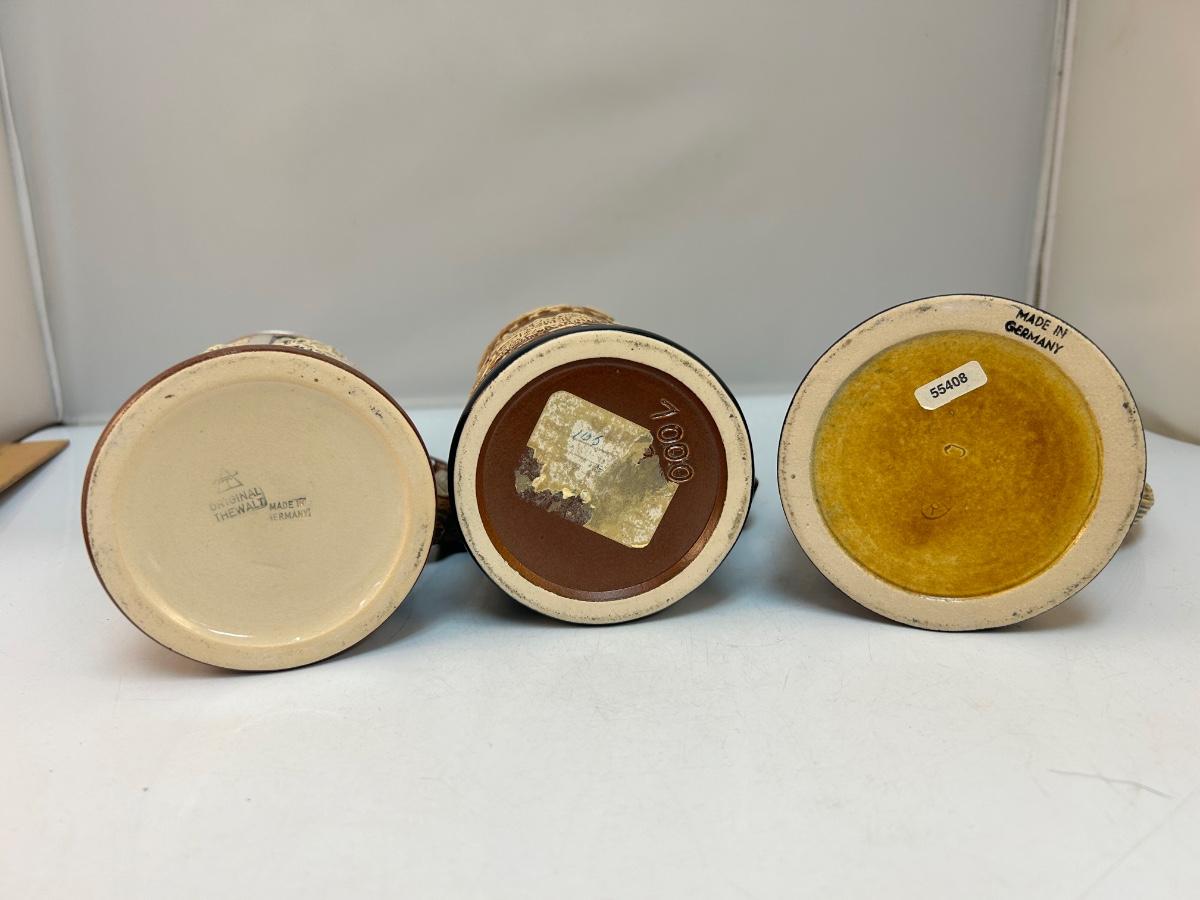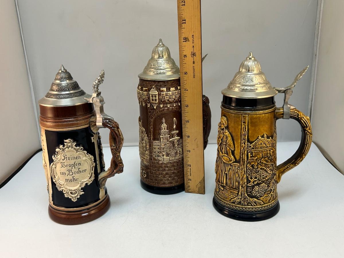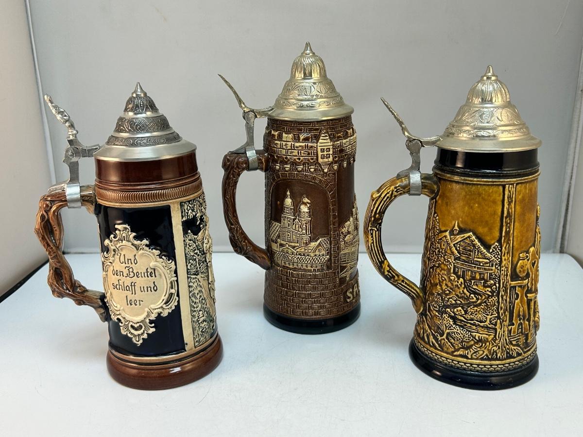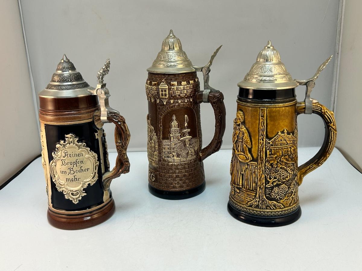 Set of Three Brown Monotone Lidded German Beer Steins
