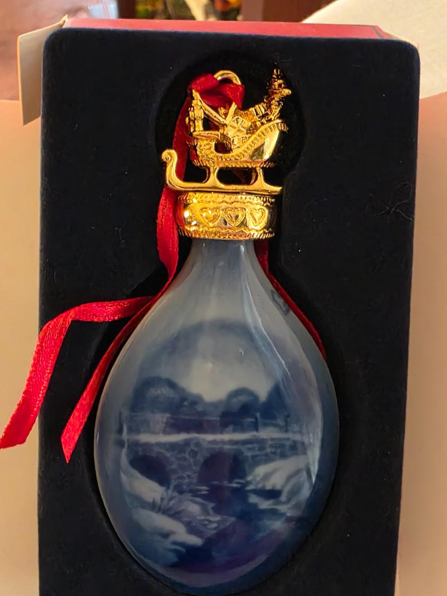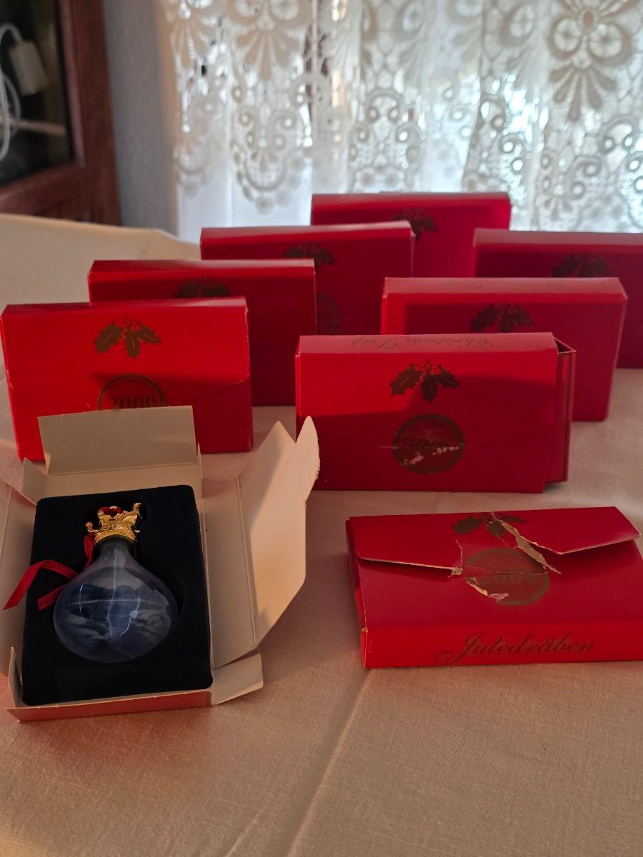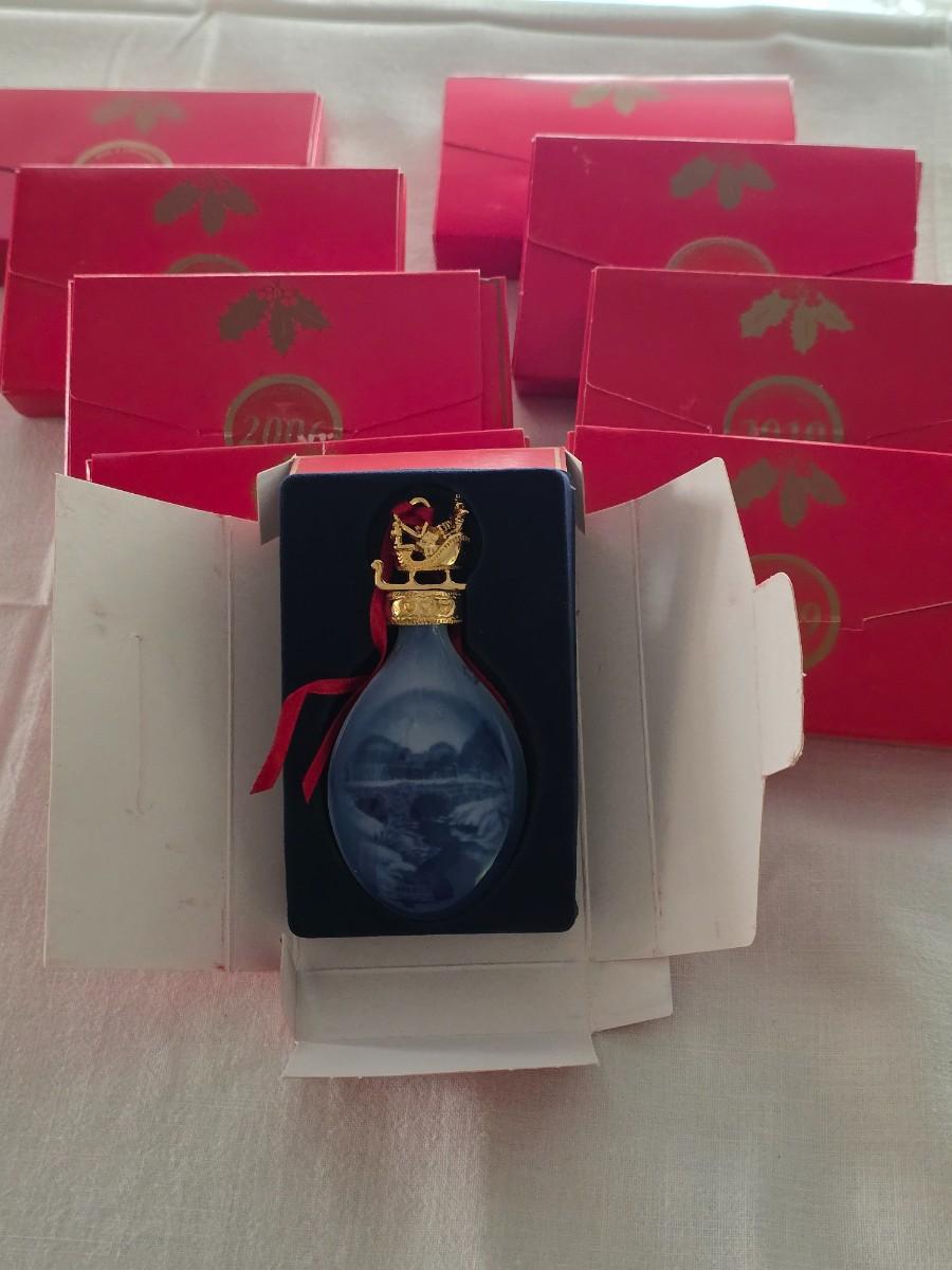 Collection of 9 Bing & Grondahl Copenhagen, porcelain, teardrop ornaments in original packaging. Dates 2008-2012, 2004-2007.