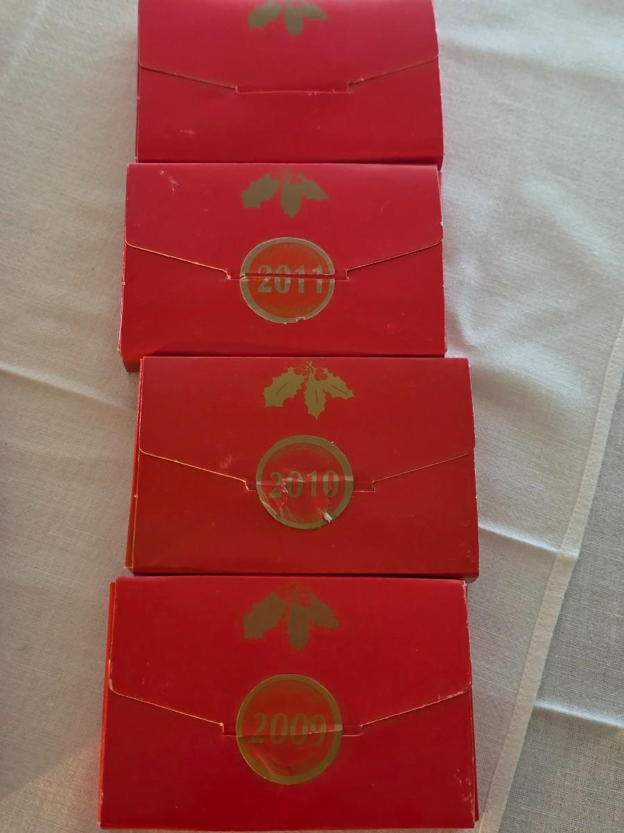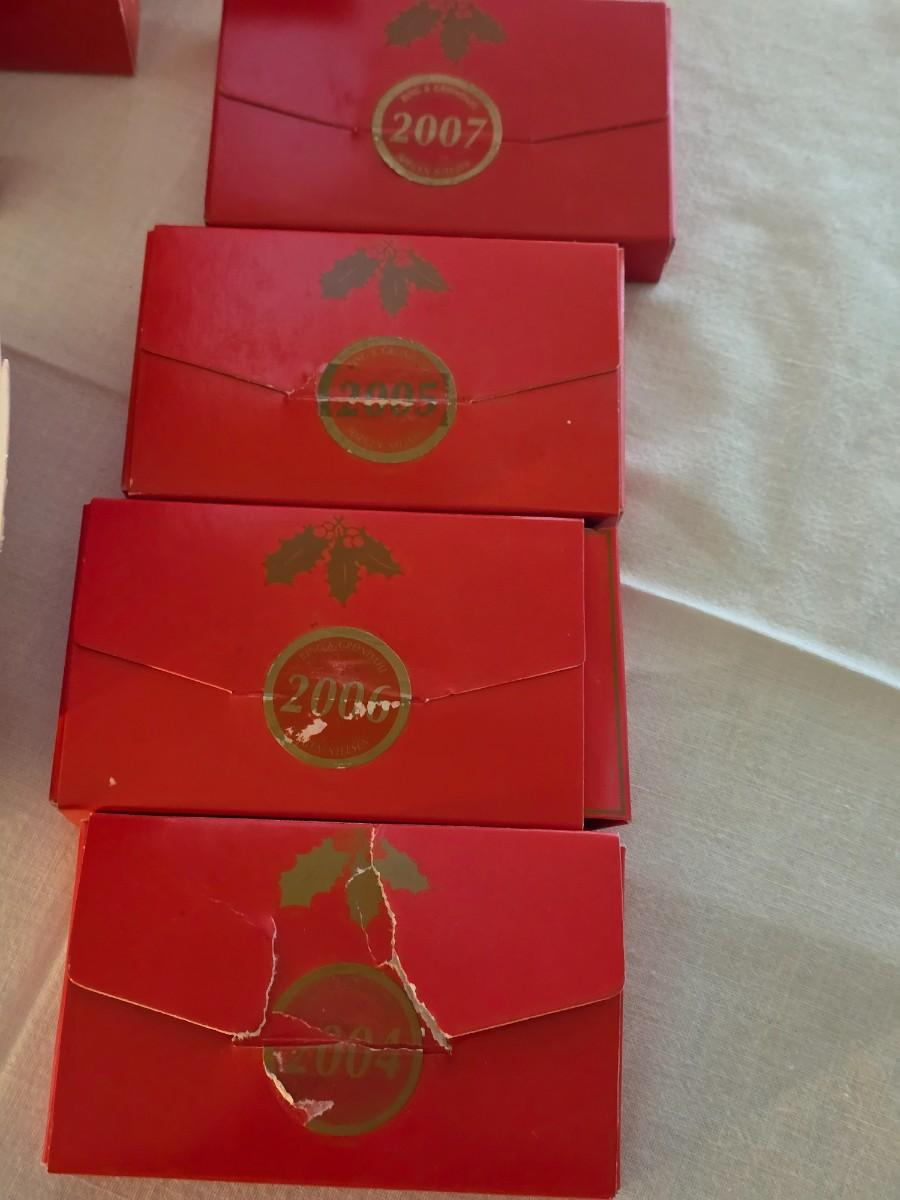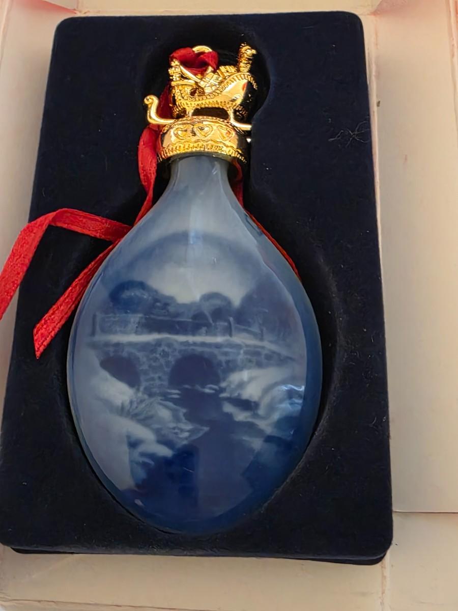 Collection of 9 Bing & Grondahl Copenhagen, porcelain, teardrop ornaments in original packaging. Dates 2008-2012, 2004-2007.