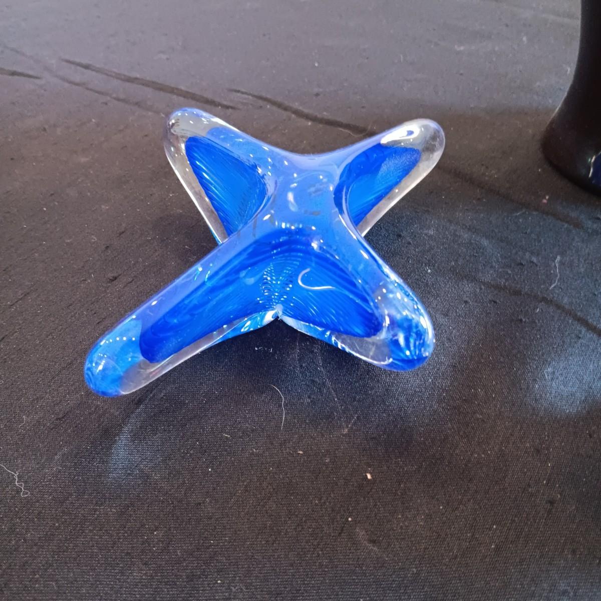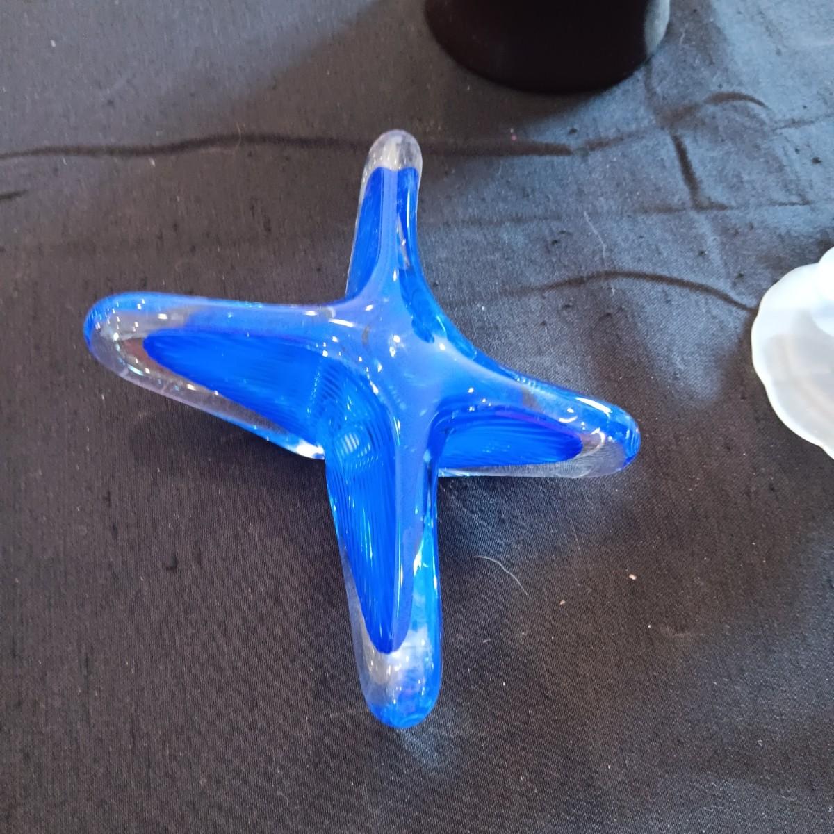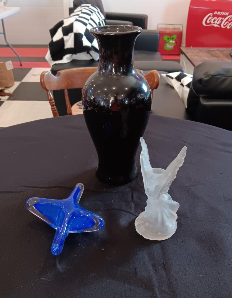 BLACK GLASS VASE, STARFISH AND ANGEL CANDLE HOLDER