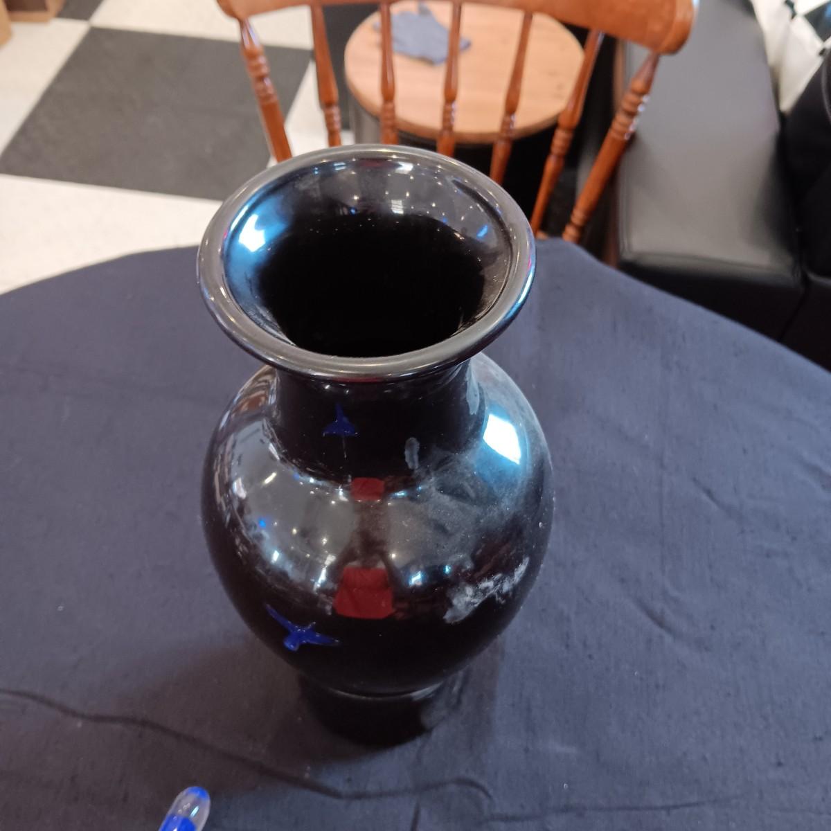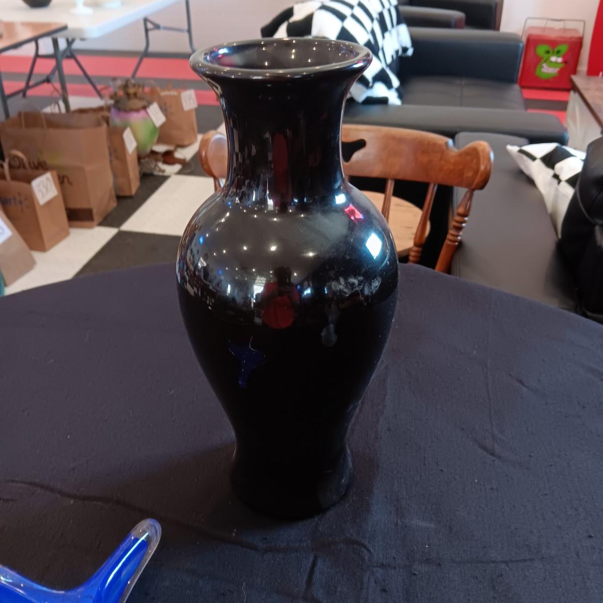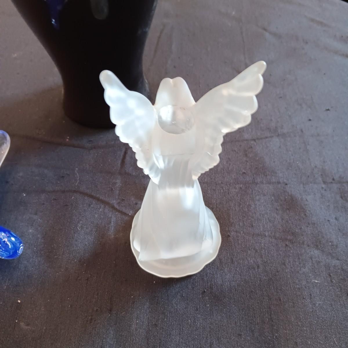 BLACK GLASS VASE, STARFISH AND ANGEL CANDLE HOLDER
