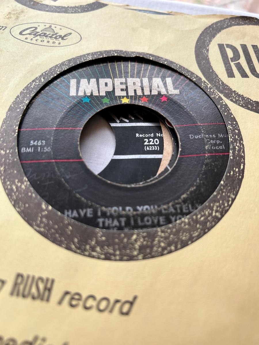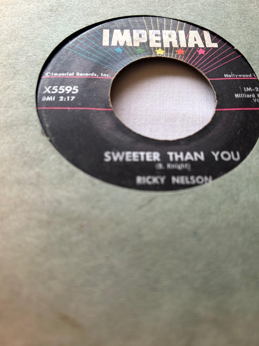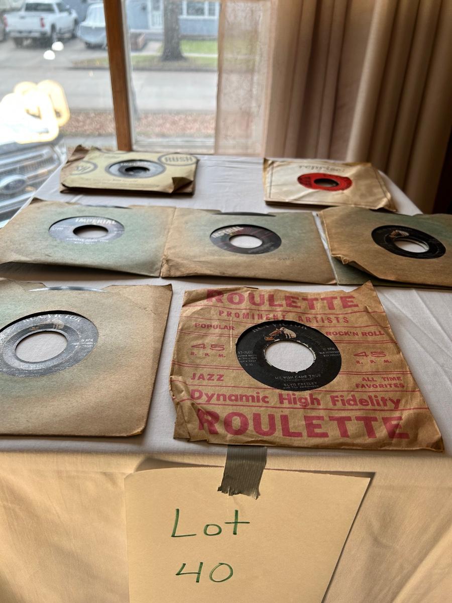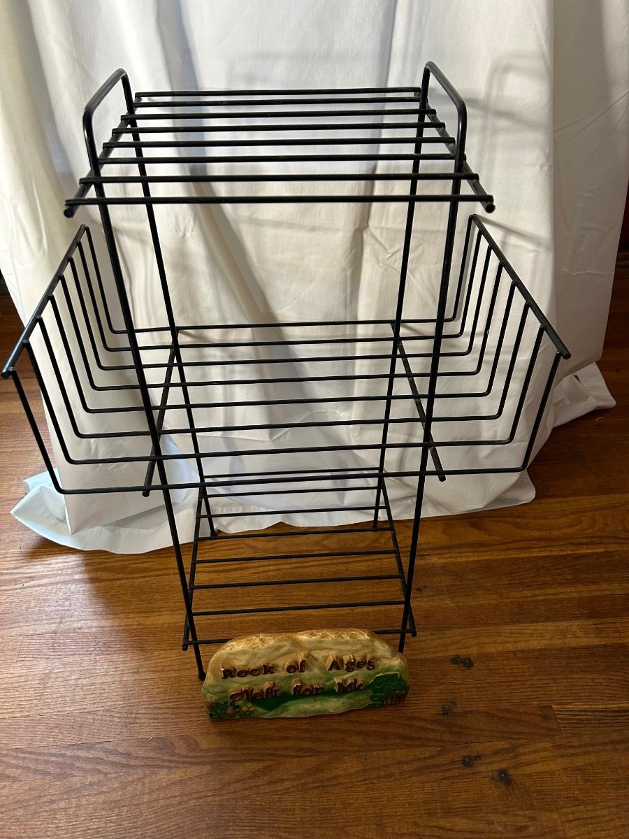 Metal stand 26 inches high by 12 inches wide. Selection of Elvis Presley , Lawerence Welk, Ricky Nelson and more.
