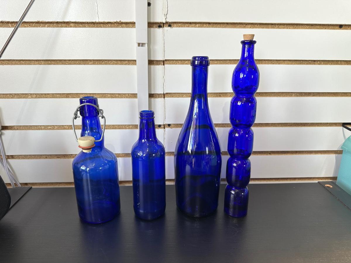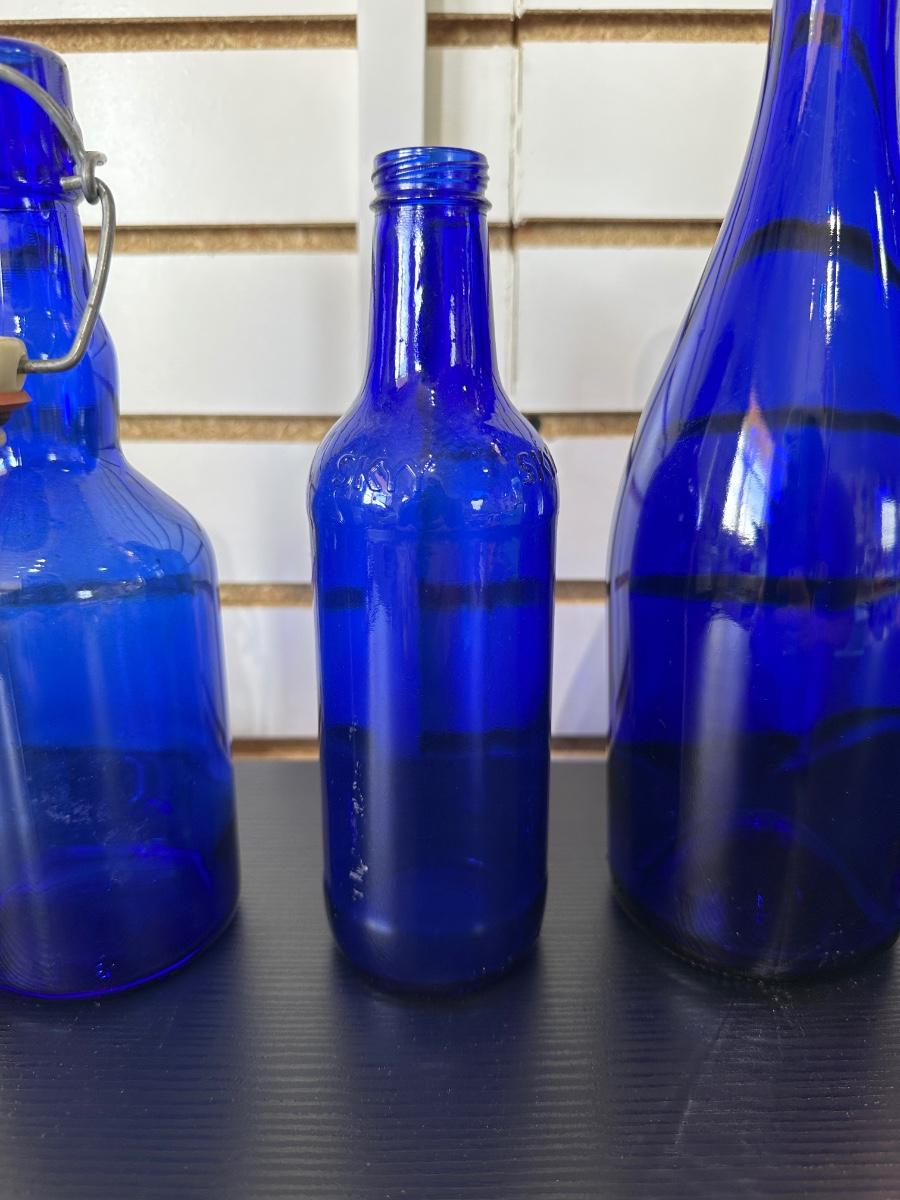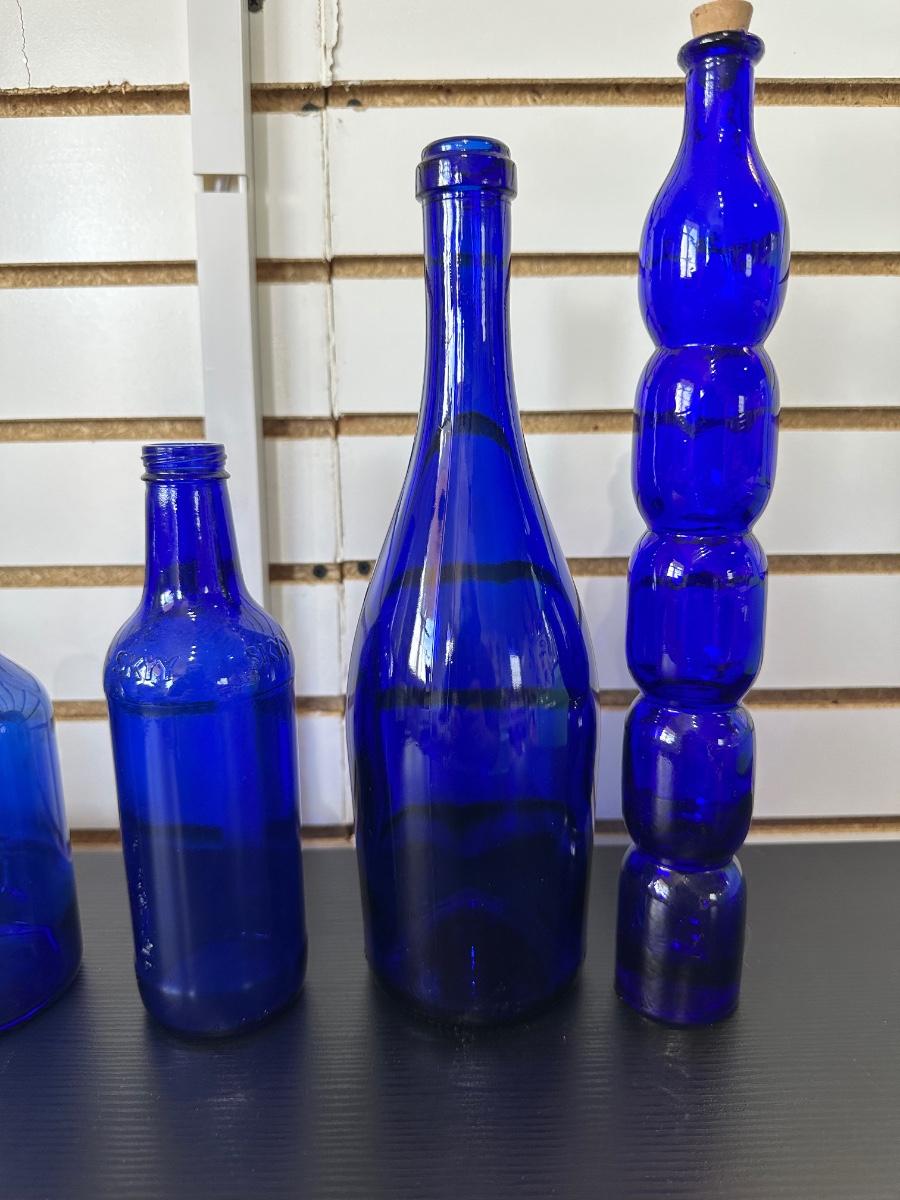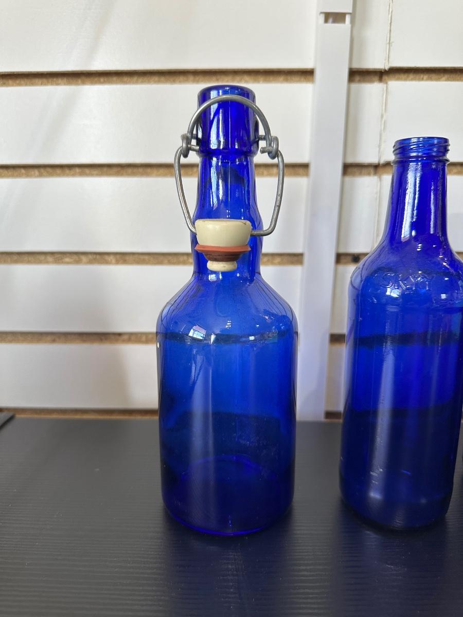 BLUE GLASS BOTTLES (3)