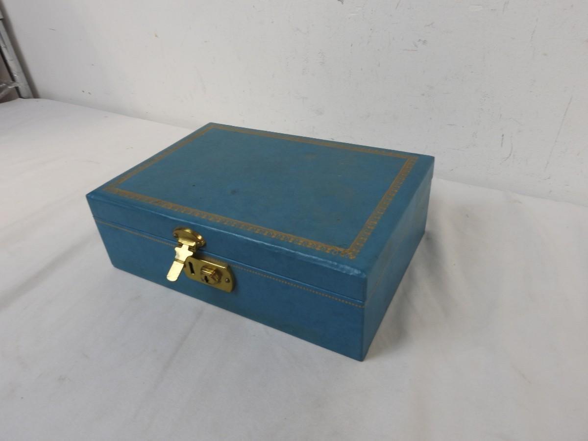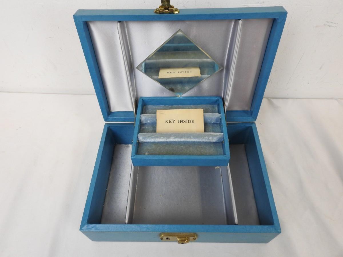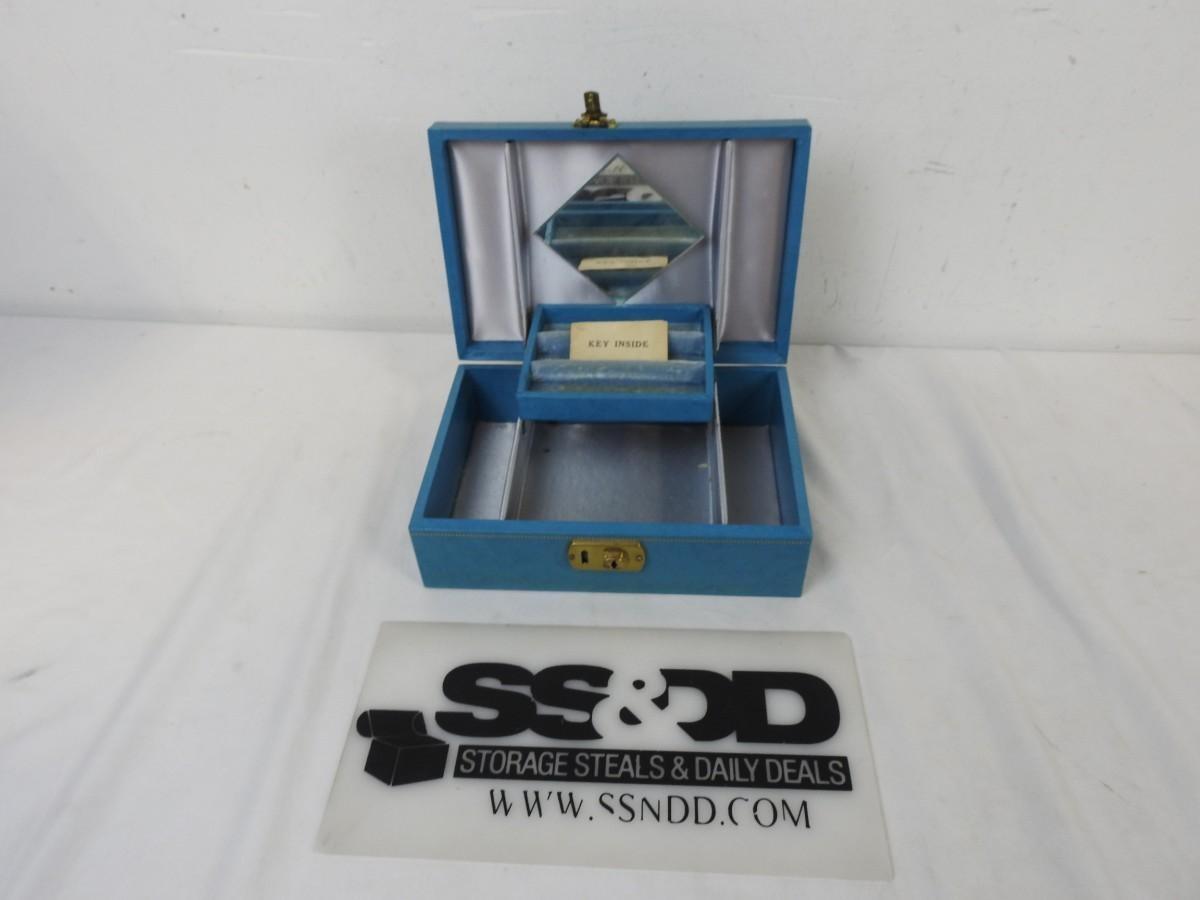 Blue Jewelry/Make Up Case, Lock and Key, Mirror and Compartments