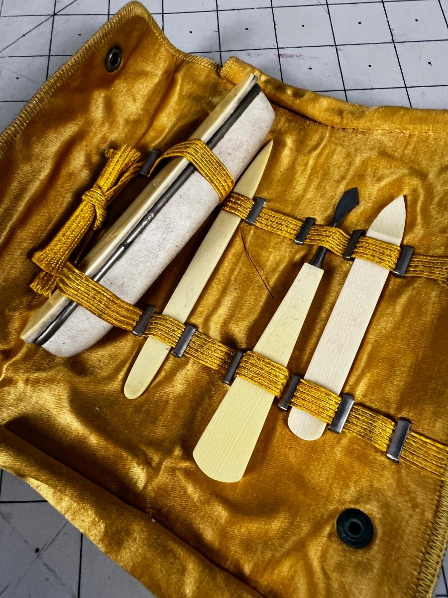 BONE Handles Partial Set in Suede Case Vintage Pedicure SET