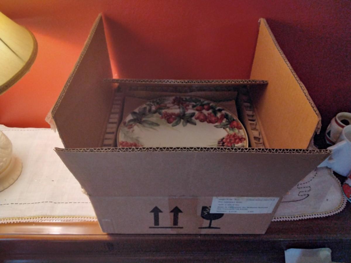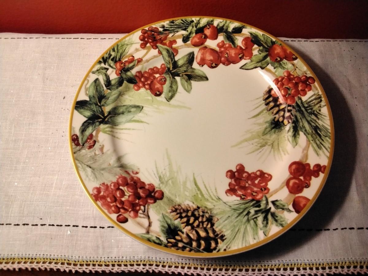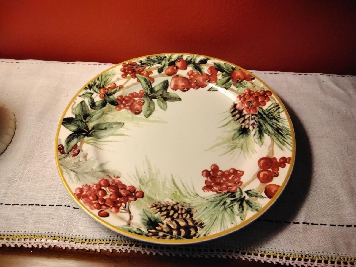In the box and never used, Gorgeous discontinued pattern only made from 2013-2016. 4 plates in box these go for $50 each on replacements.ltd. The beauties will make your holiday table perfect.