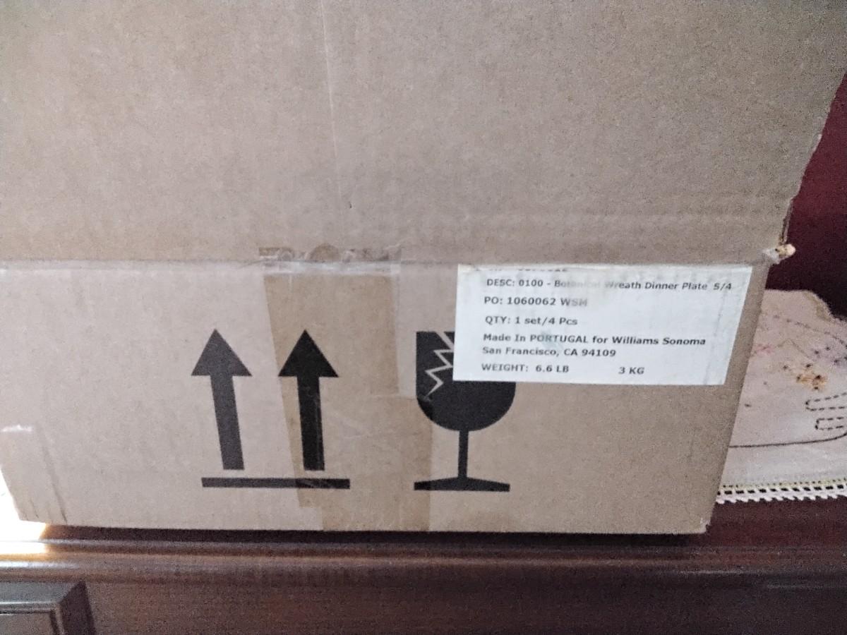 In the box and never used, Gorgeous discontinued pattern only made from 2013-2016. 4 plates in box these go for $50 each on replacements.ltd. The beauties will make your holiday table perfect.