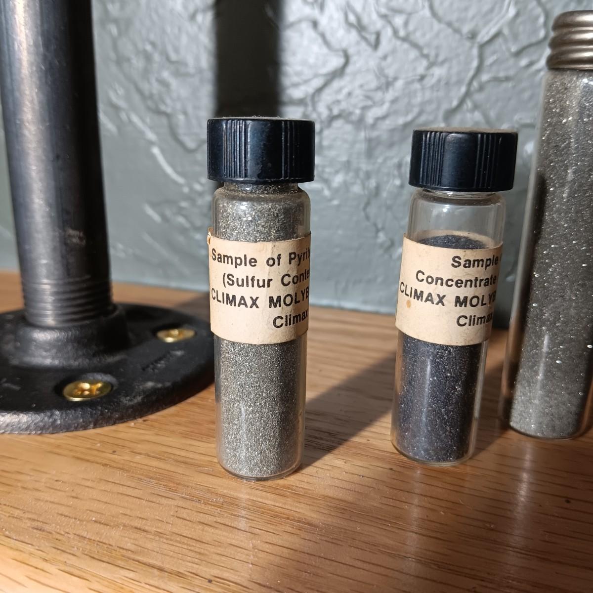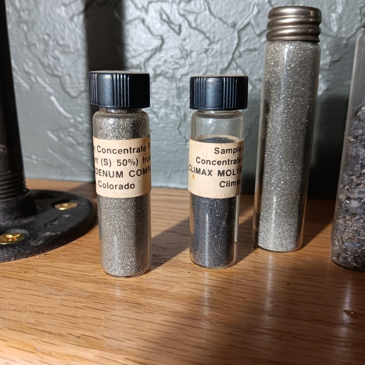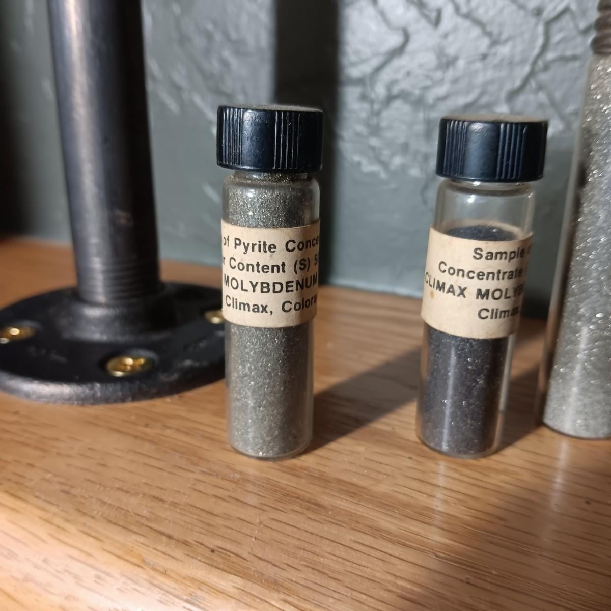 BOTTLES MARKED SAMPLE OF CONCENTRATED CLIMAX MOLYBDENITE PLUS ARROWHEADS