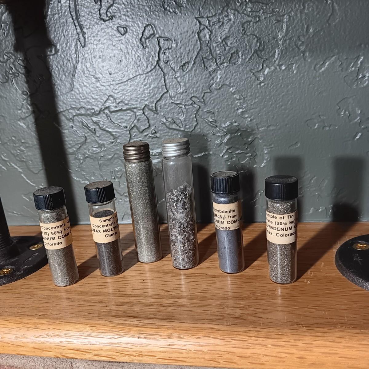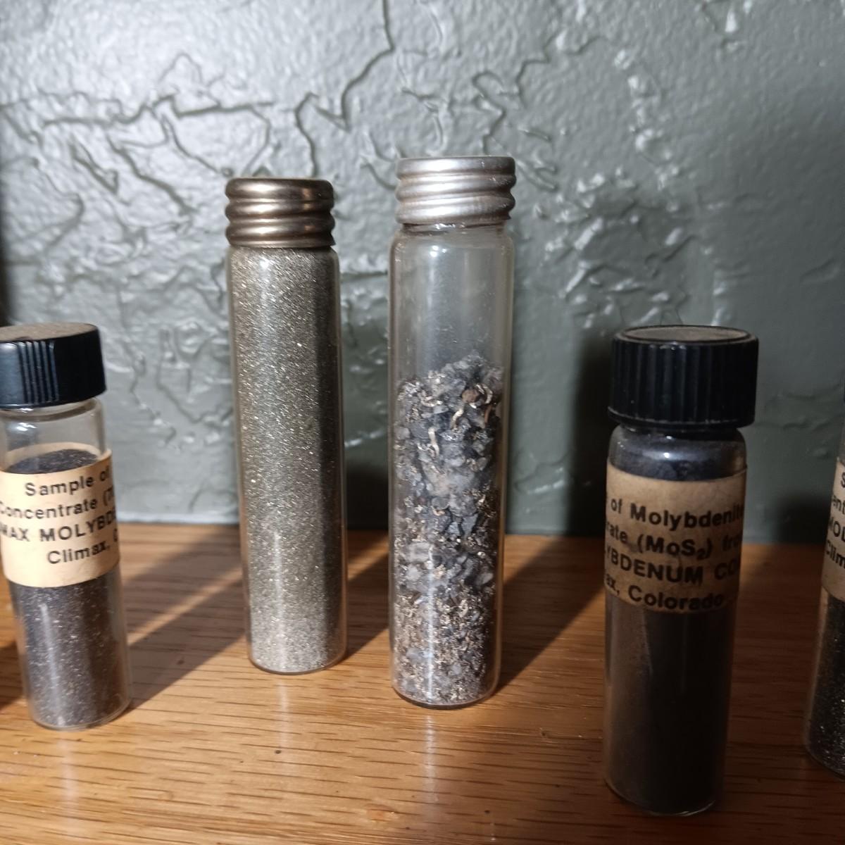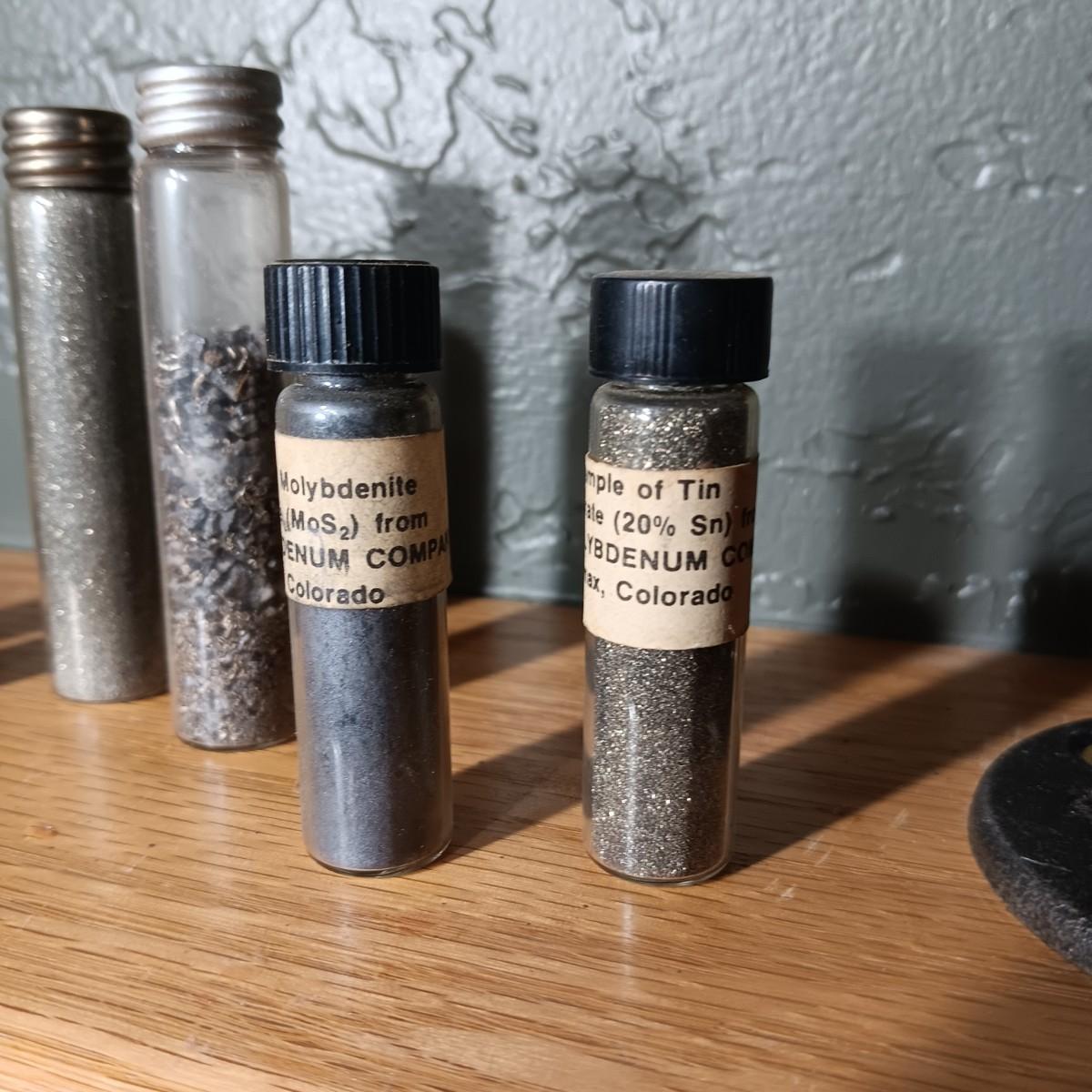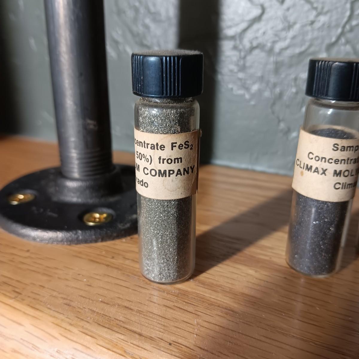 BOTTLES MARKED SAMPLE OF CONCENTRATED CLIMAX MOLYBDENITE PLUS ARROWHEADS