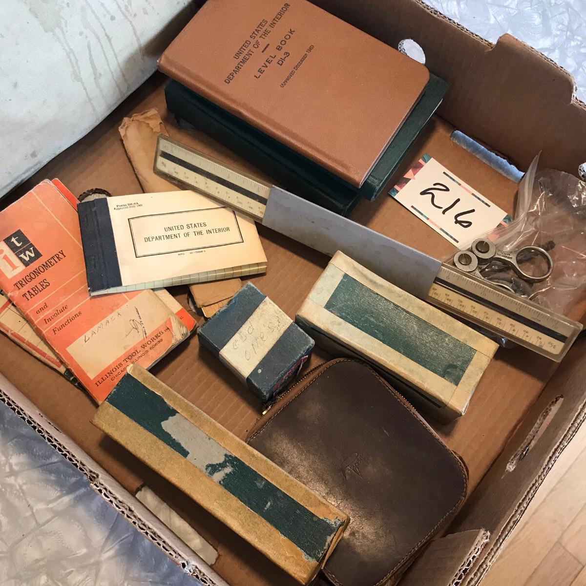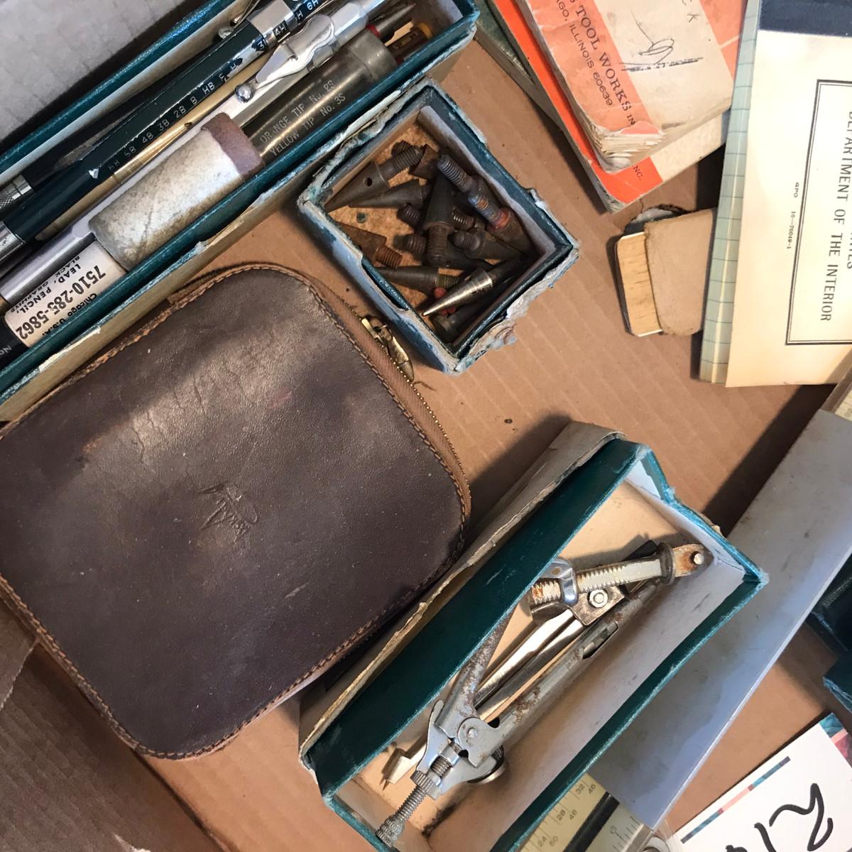 Box lot of drafting supplies