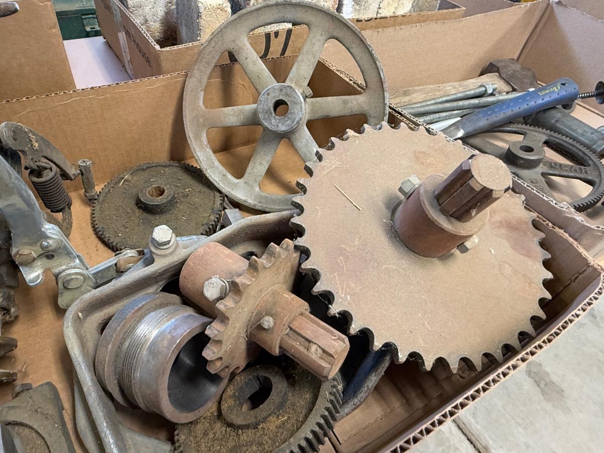 Box of machine parts – gears/wheels/metal parts