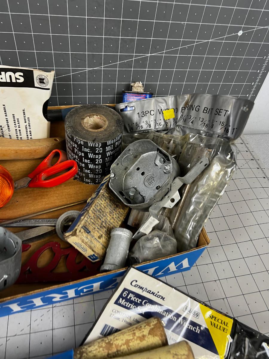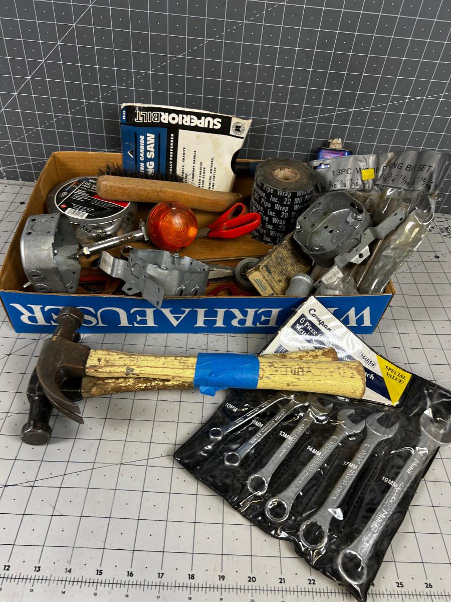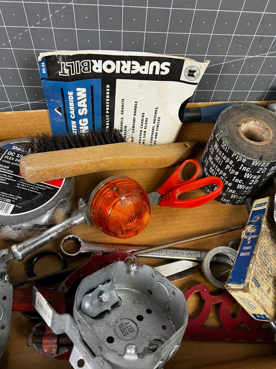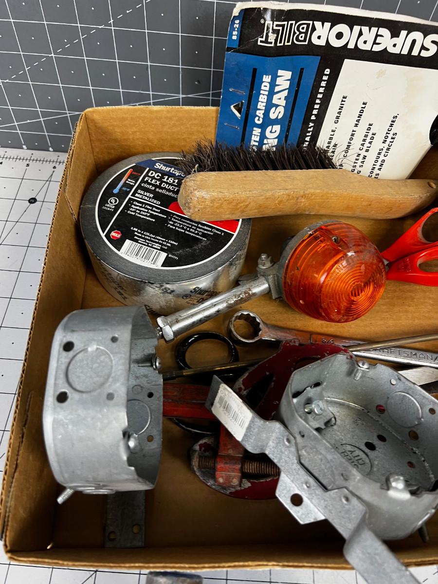 Box of Misc. Tools and Garage Part items