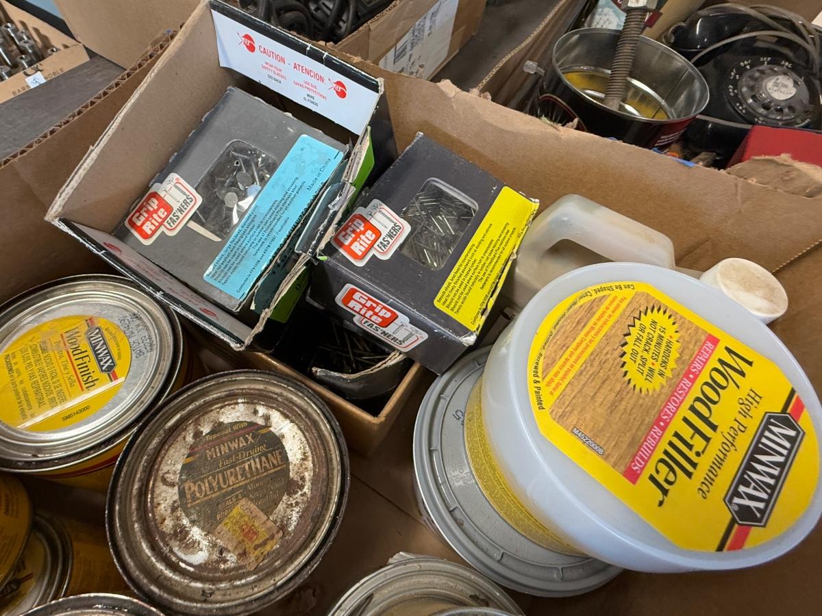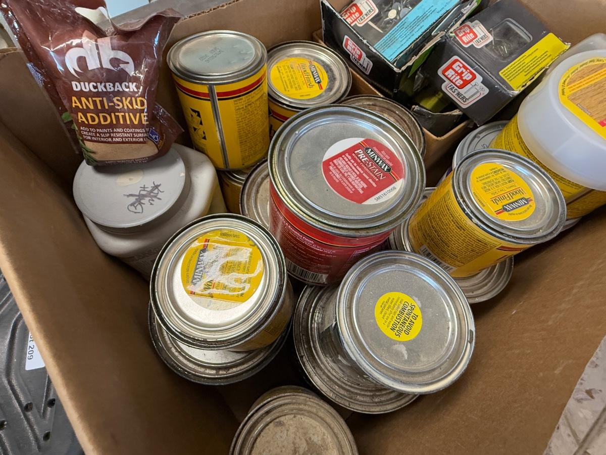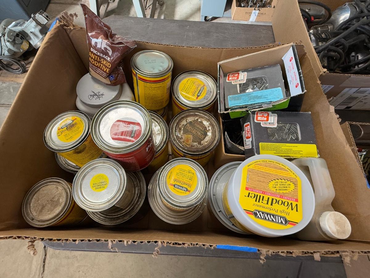 all as shown – many cans and couple boxes of nails and anti-skid additive.
