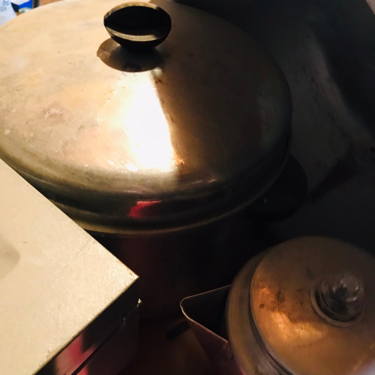 Box of Tinware Kitchen Stuff
