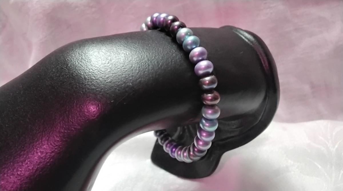 Beautiful Jewel Tones  7mm Pearl Adjustable Bracelet