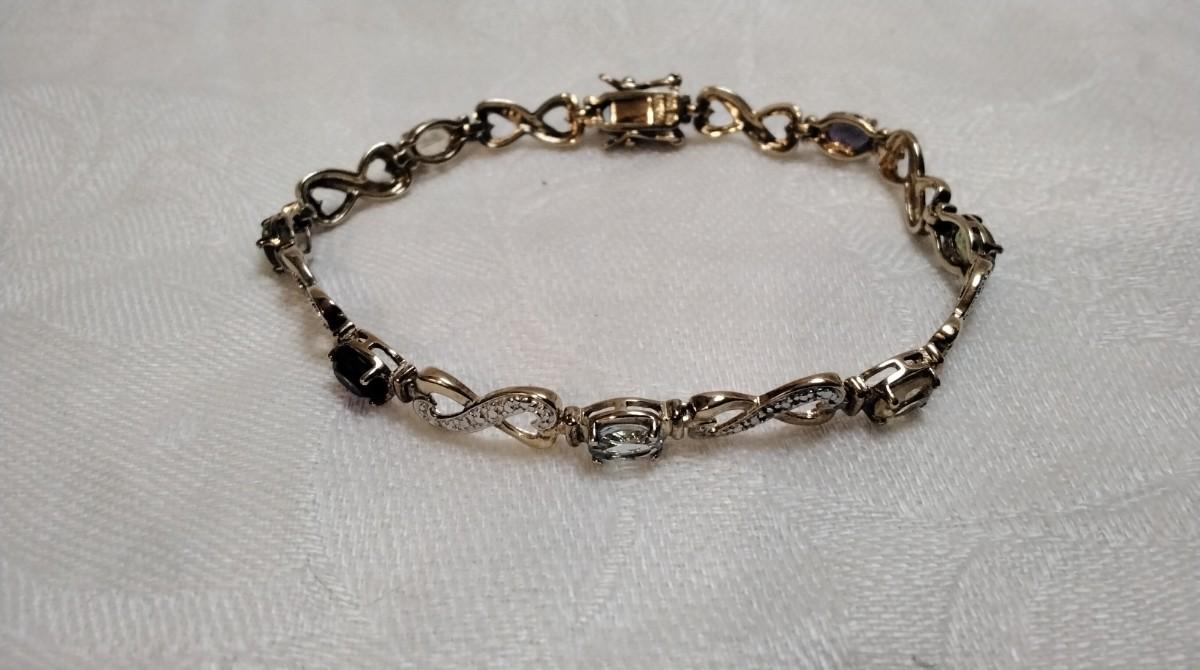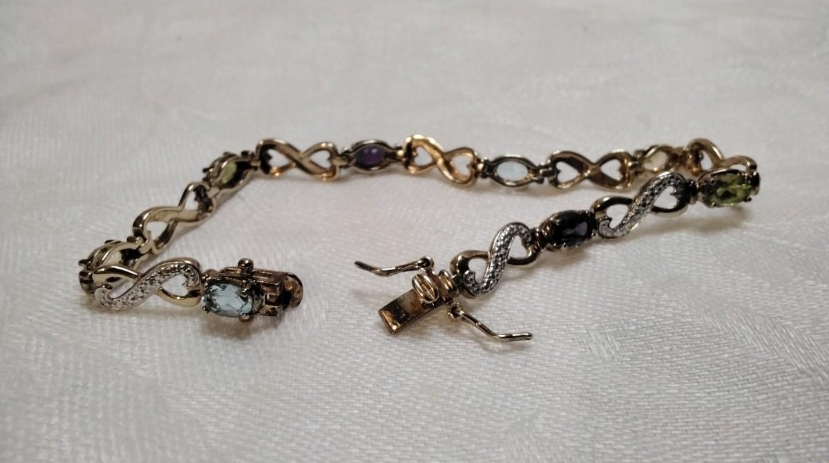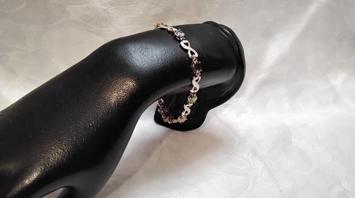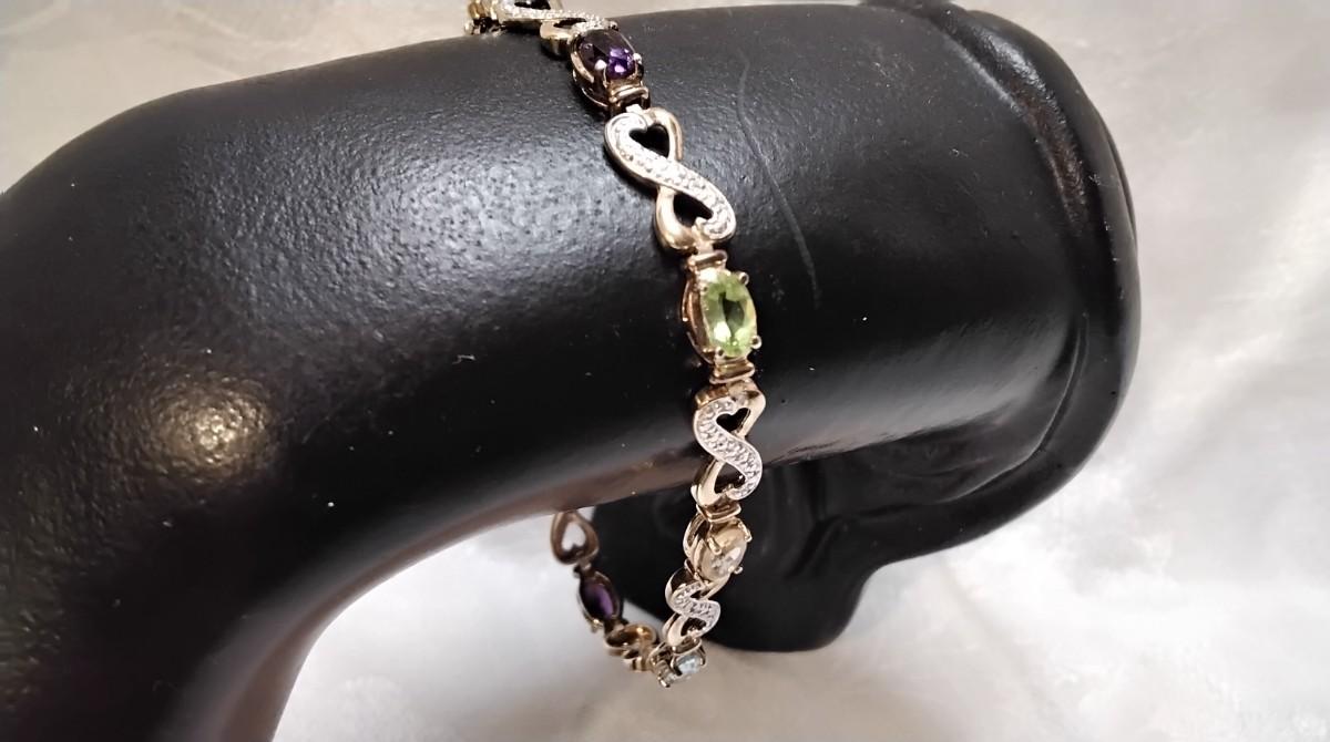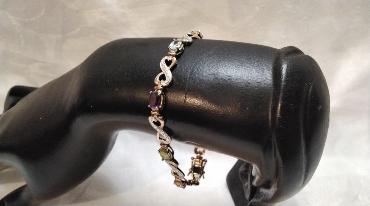 Vintage Ross Simon Diamond, Amethyst, Peridot, Citrine Gold Vermeil 7" Bracelet
